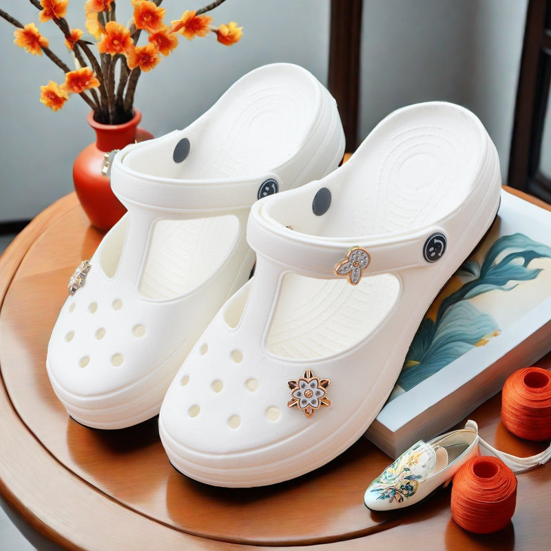 夏季白色护士鞋女厚底防滑轻便EVA泡沫洞洞鞋高档花园鞋沙滩鞋潮