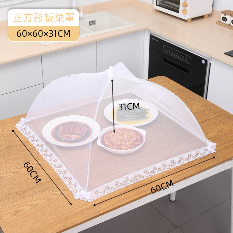 厂家直供白色大号方形折叠盖菜罩可拆洗网纱食物罩餐桌罩防虫罩子