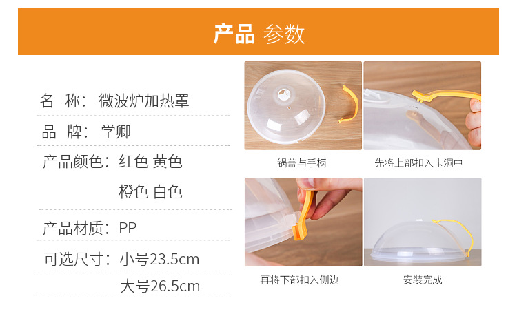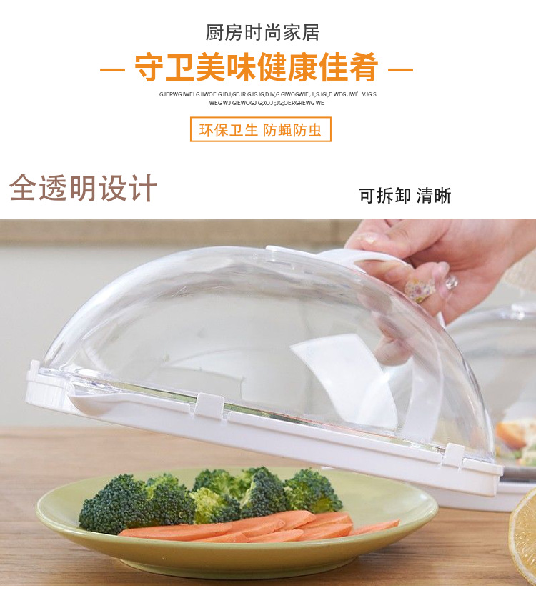 跨境微波炉圆形罩透明菜盖食物耐高温塑料菜罩超大号多功能防苍蝇