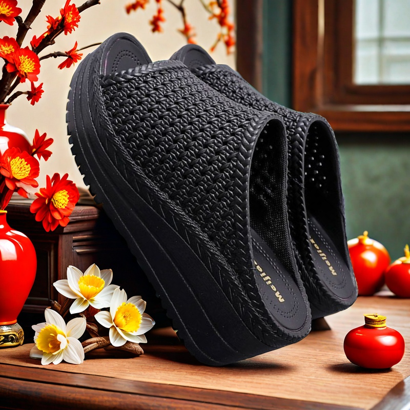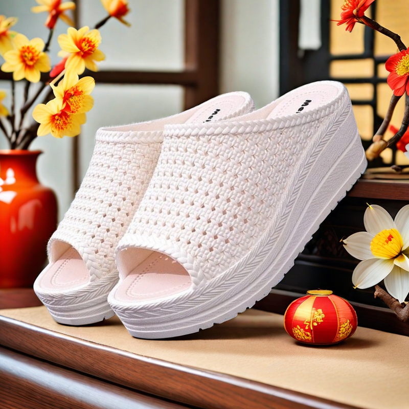 高跟拖鞋女款夏季外穿厚底镂空坡跟鱼嘴一字拖时尚增高沙滩凉拖鞋