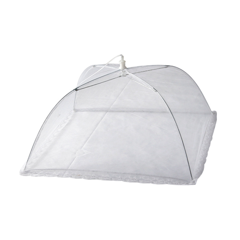 跨境新款白色网纱可折叠 拆洗蕾丝菜罩 防蝇罩 食物罩方形饭菜罩