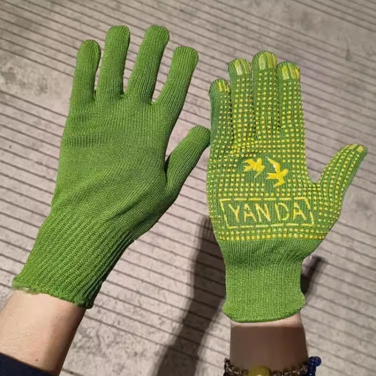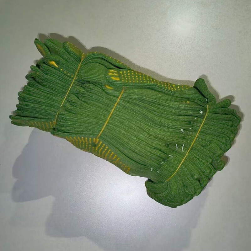 耐脏防滑点胶手套劳保耐磨男女透气点塑点胶尼龙军绿工地手套批发