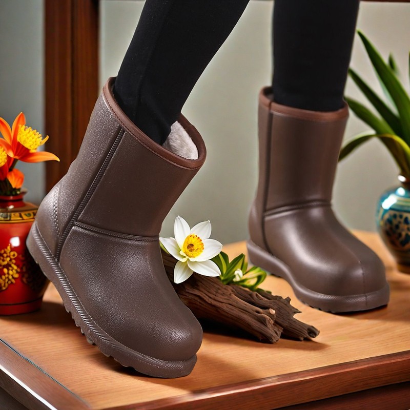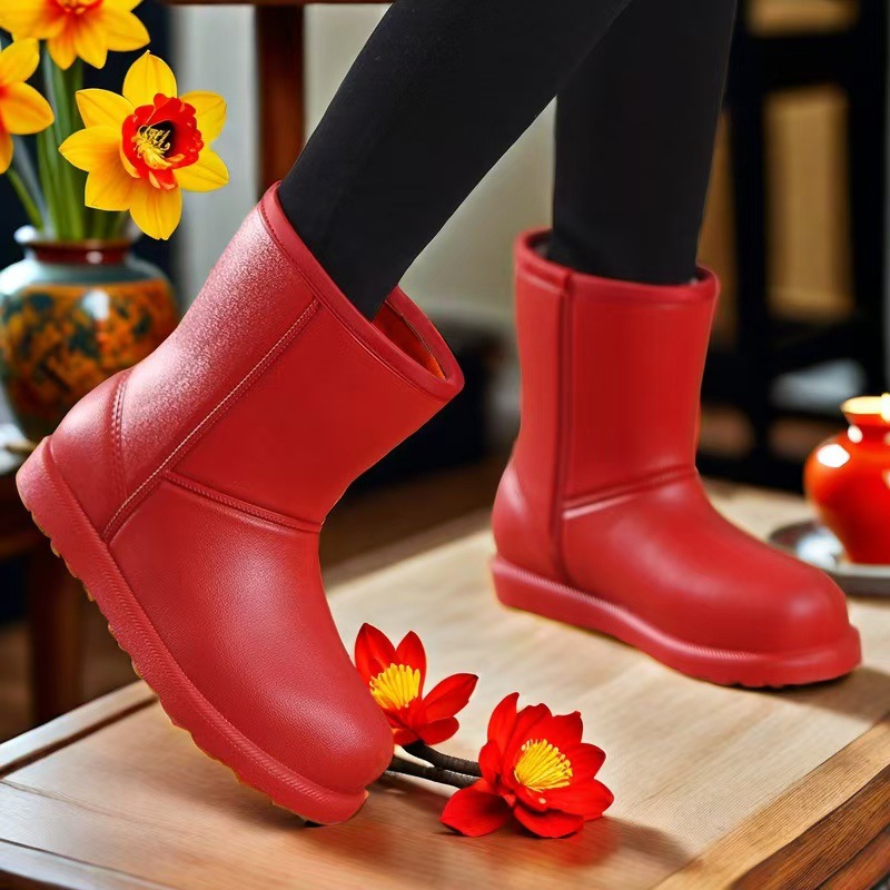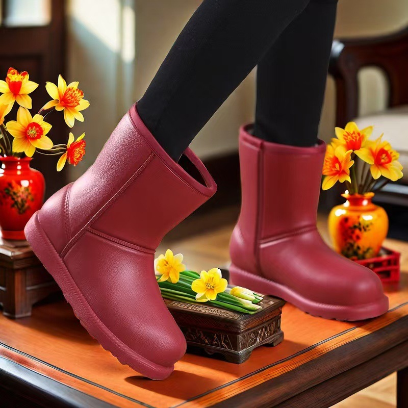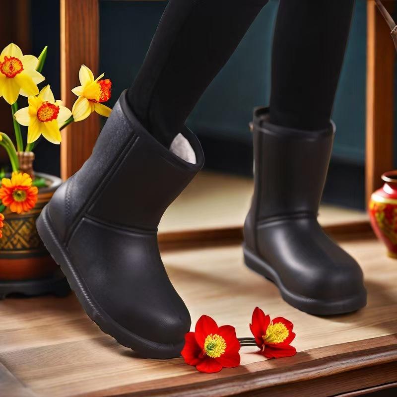 加绒雪地靴防滑保暖防水雨靴学生韩版靴一体鞋厨房洗衣工作鞋仁承
