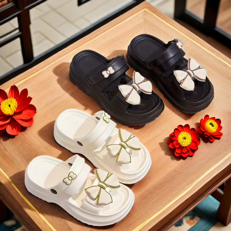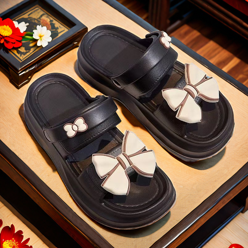 踩屎感厚底凉鞋超轻耐磨松糕底洋气蝴蝶结沙滩鞋两穿凉拖鞋