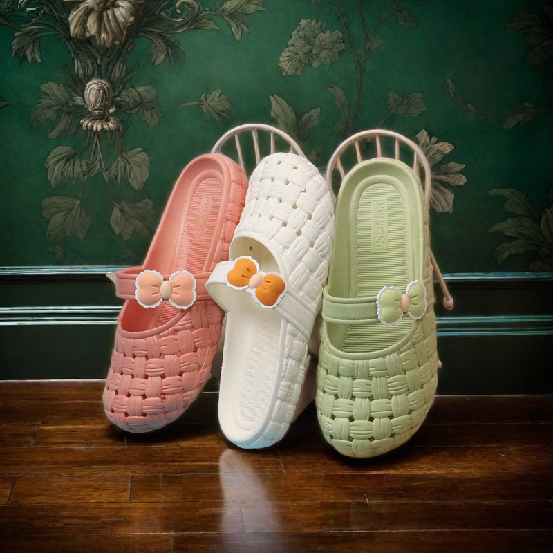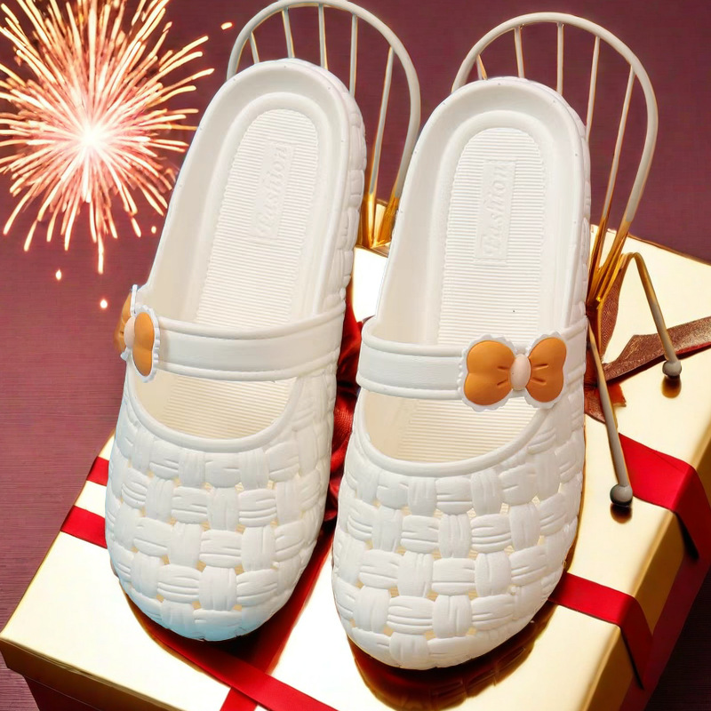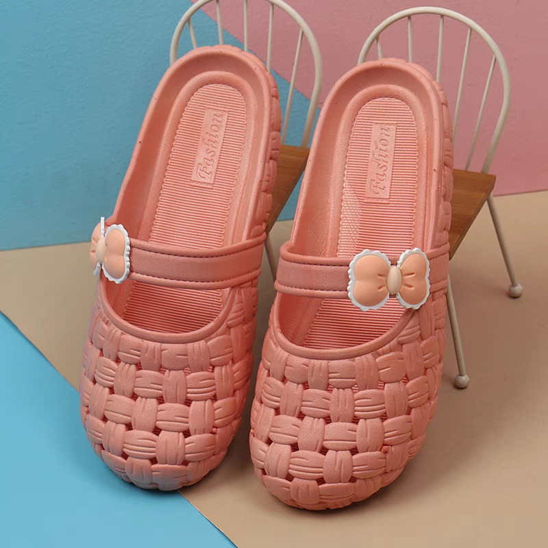 女包头半拖鞋白色夏季软底室内外穿凉拖鞋休闲平底防滑沙滩洞洞鞋