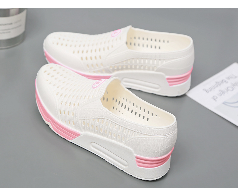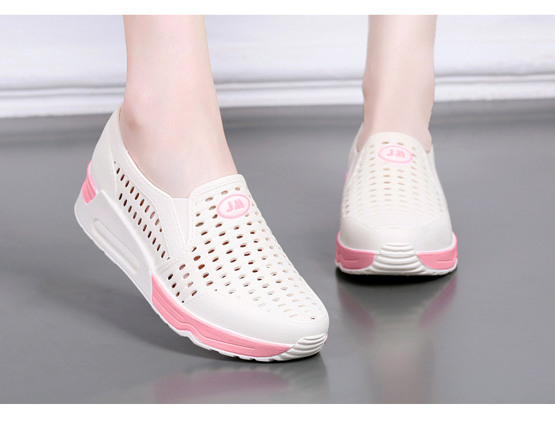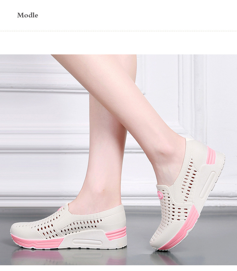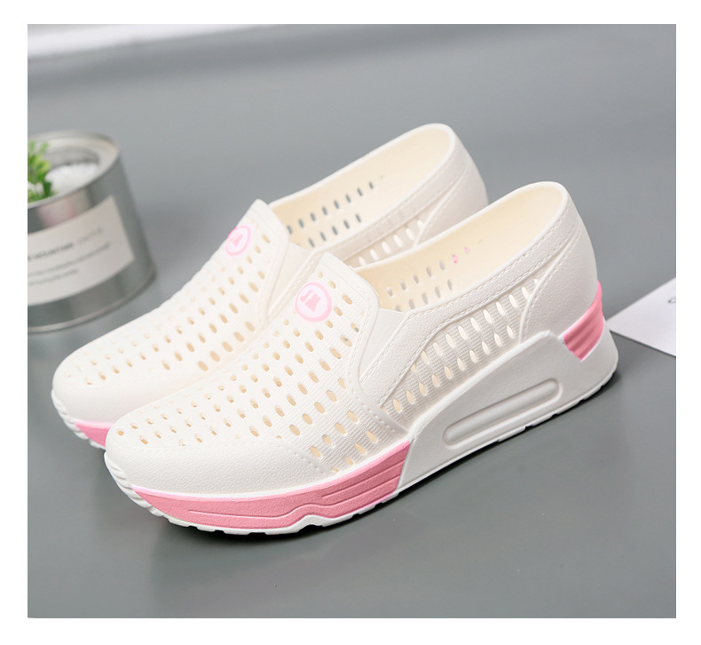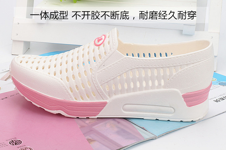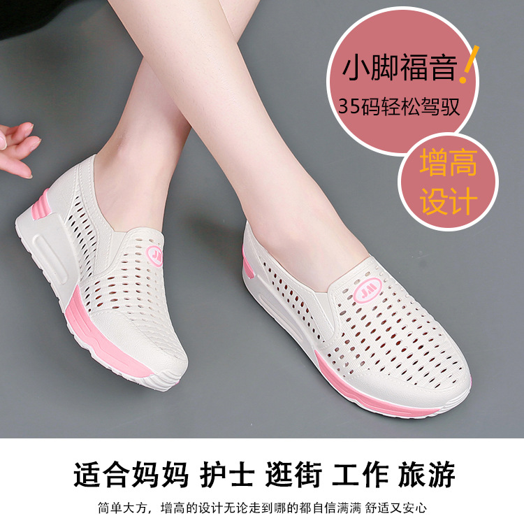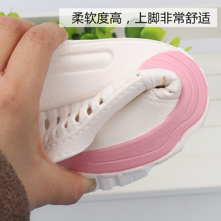 护士鞋女白色坡跟夏季美容鞋洞洞塑胶透气不累脚凉鞋