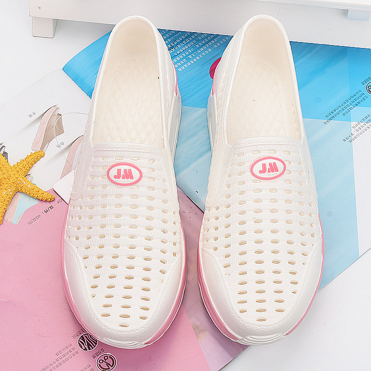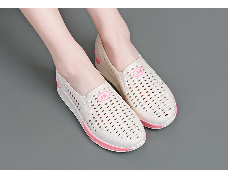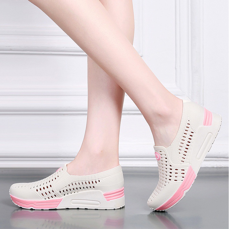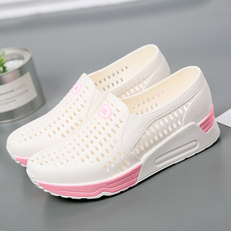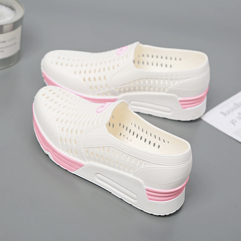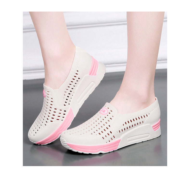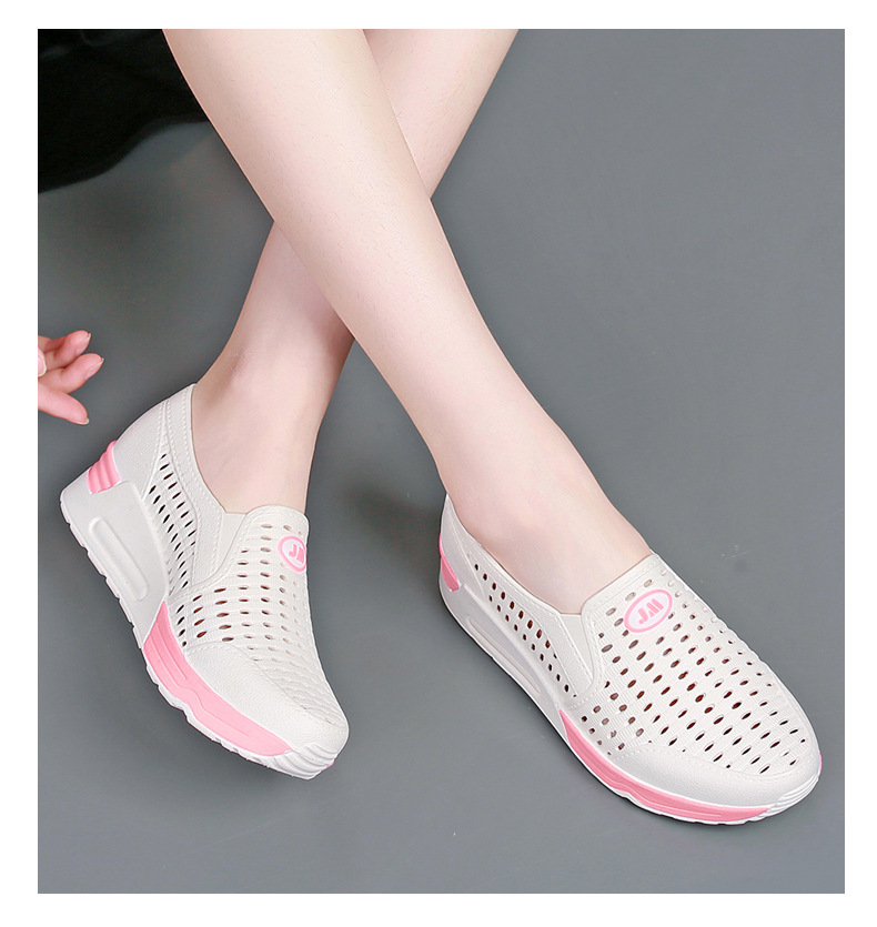 护士鞋女白色坡跟夏季美容鞋洞洞塑胶透气不累脚凉鞋