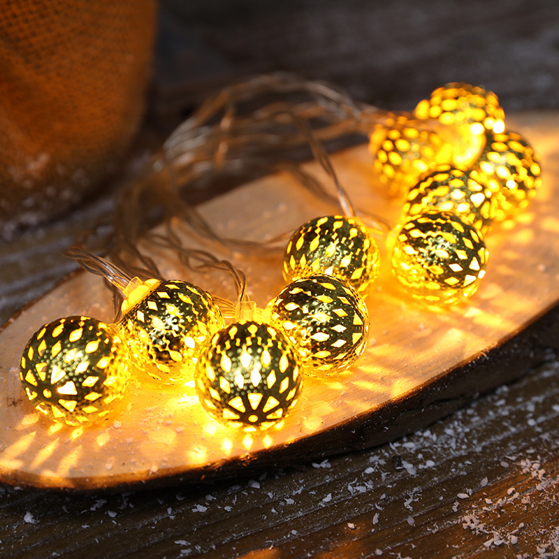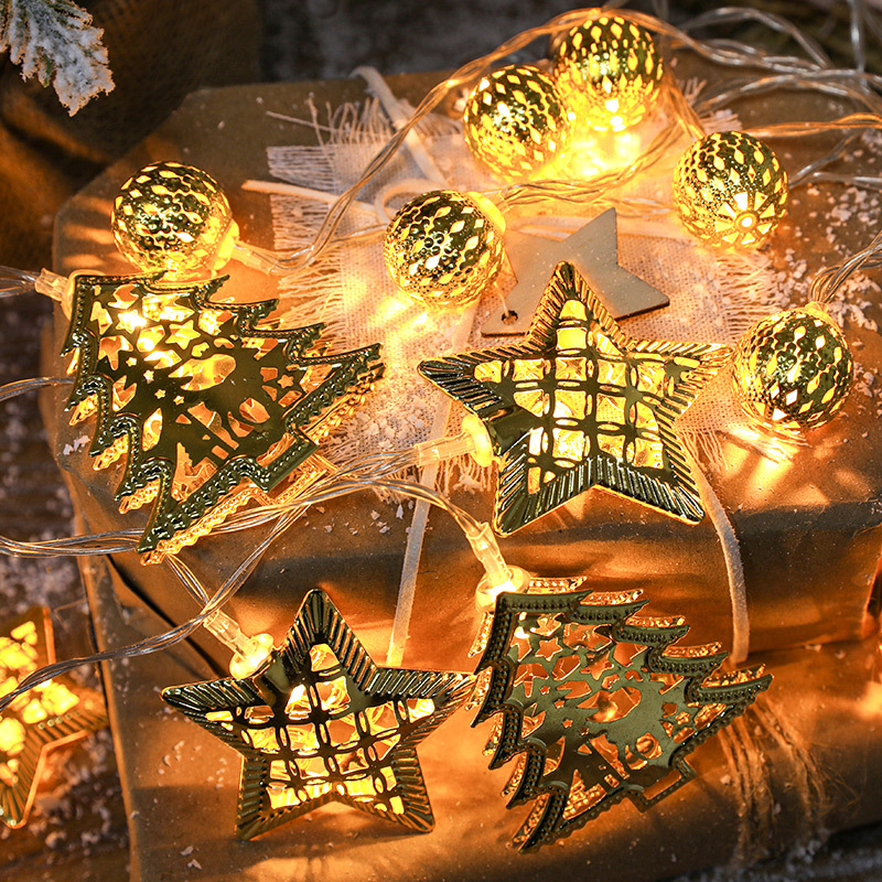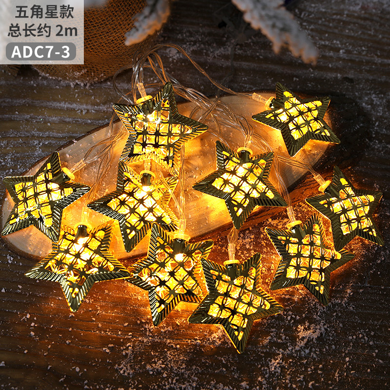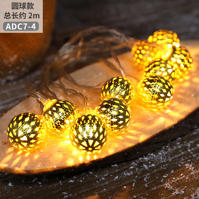 跨境圣诞节摩洛哥球灯串铁艺镂空五角星雪花圆球圣诞树LED彩灯串