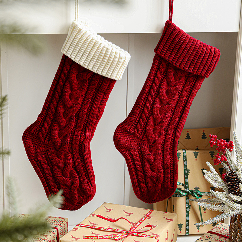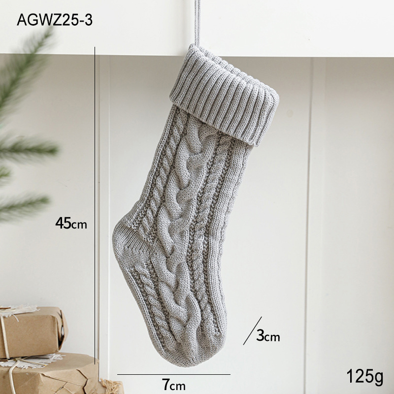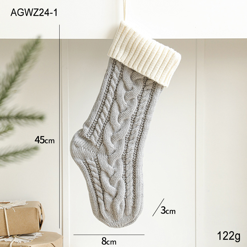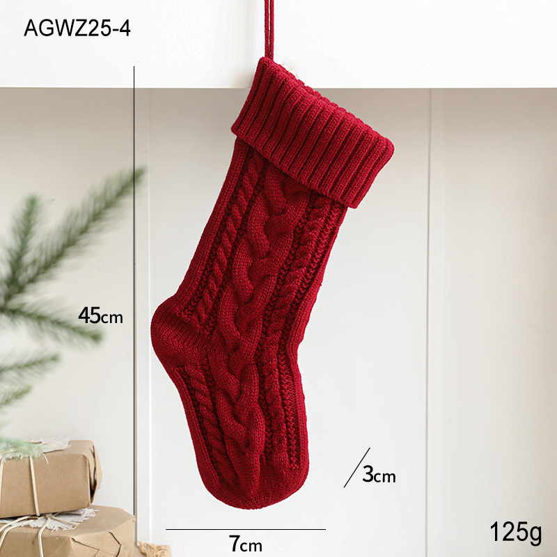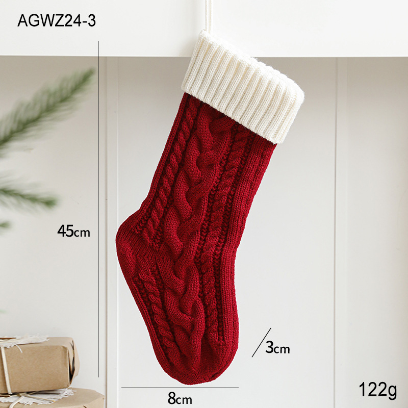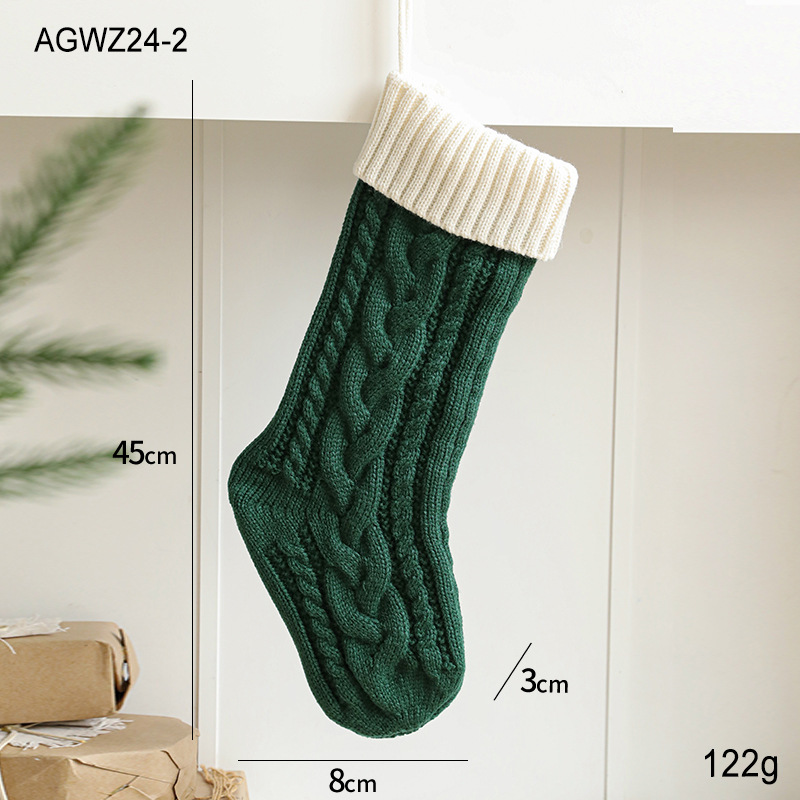 跨境针织毛线圣诞礼物袋装饰袜圣诞袜挂件拼色加大错角麻花礼品袋