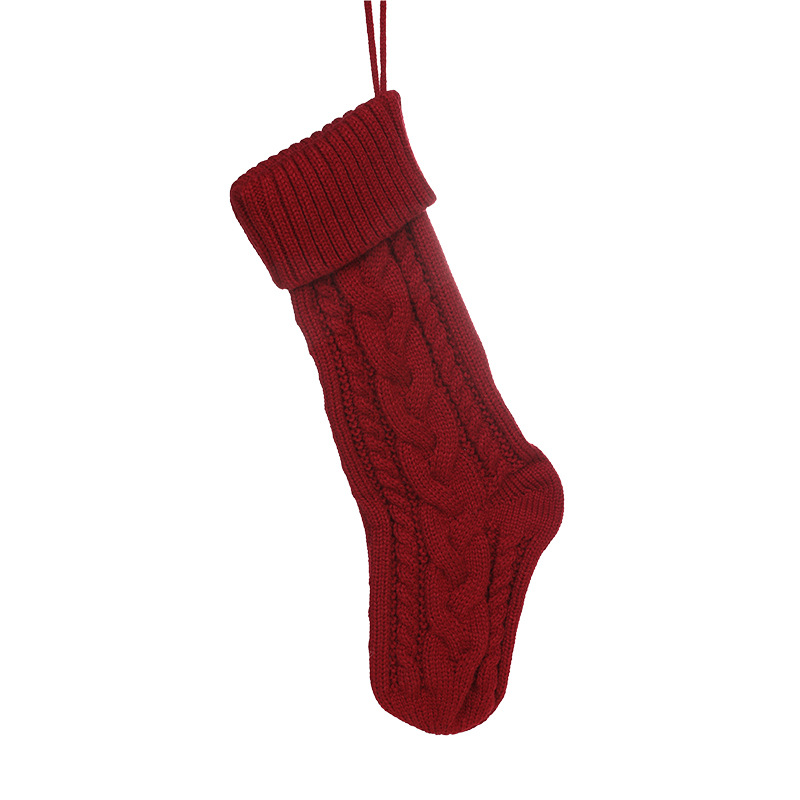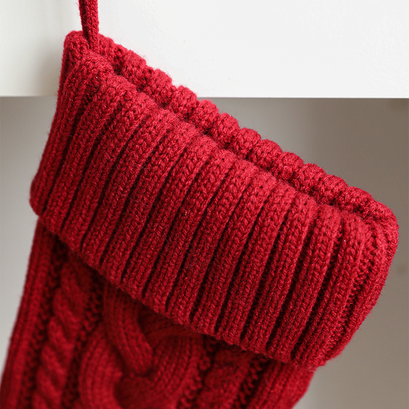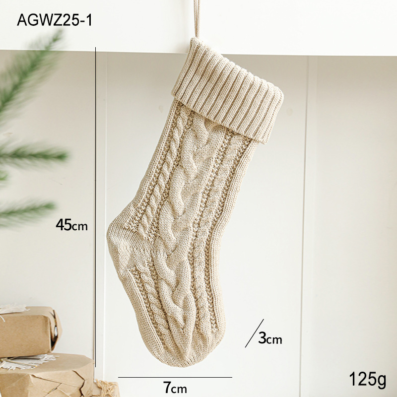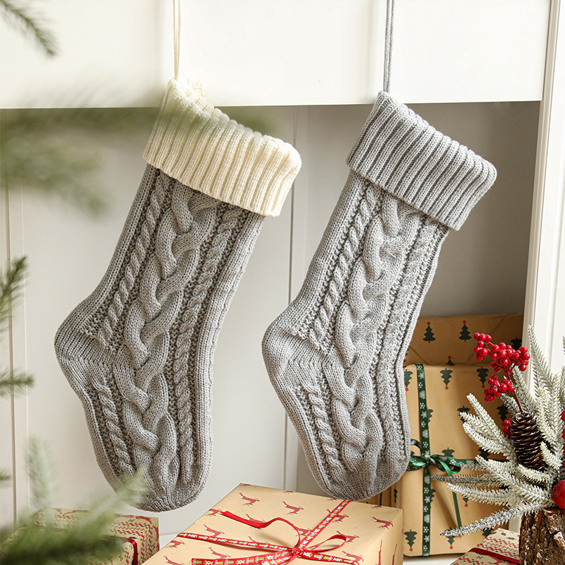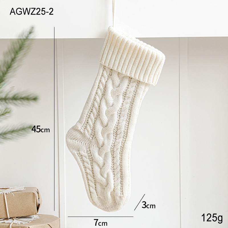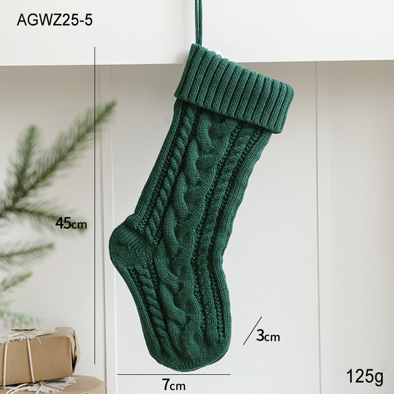 跨境针织毛线圣诞礼物袋装饰袜圣诞袜挂件拼色加大错角麻花礼品袋