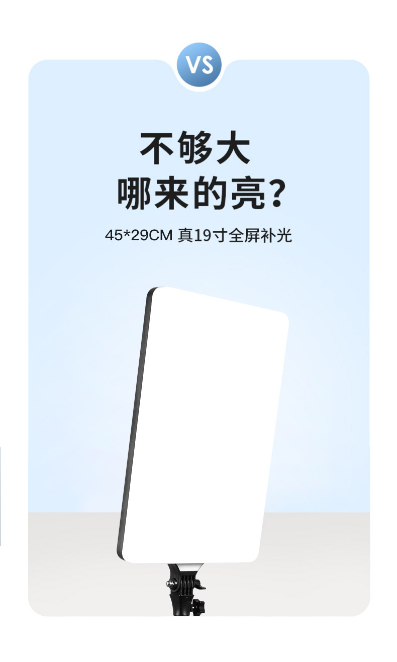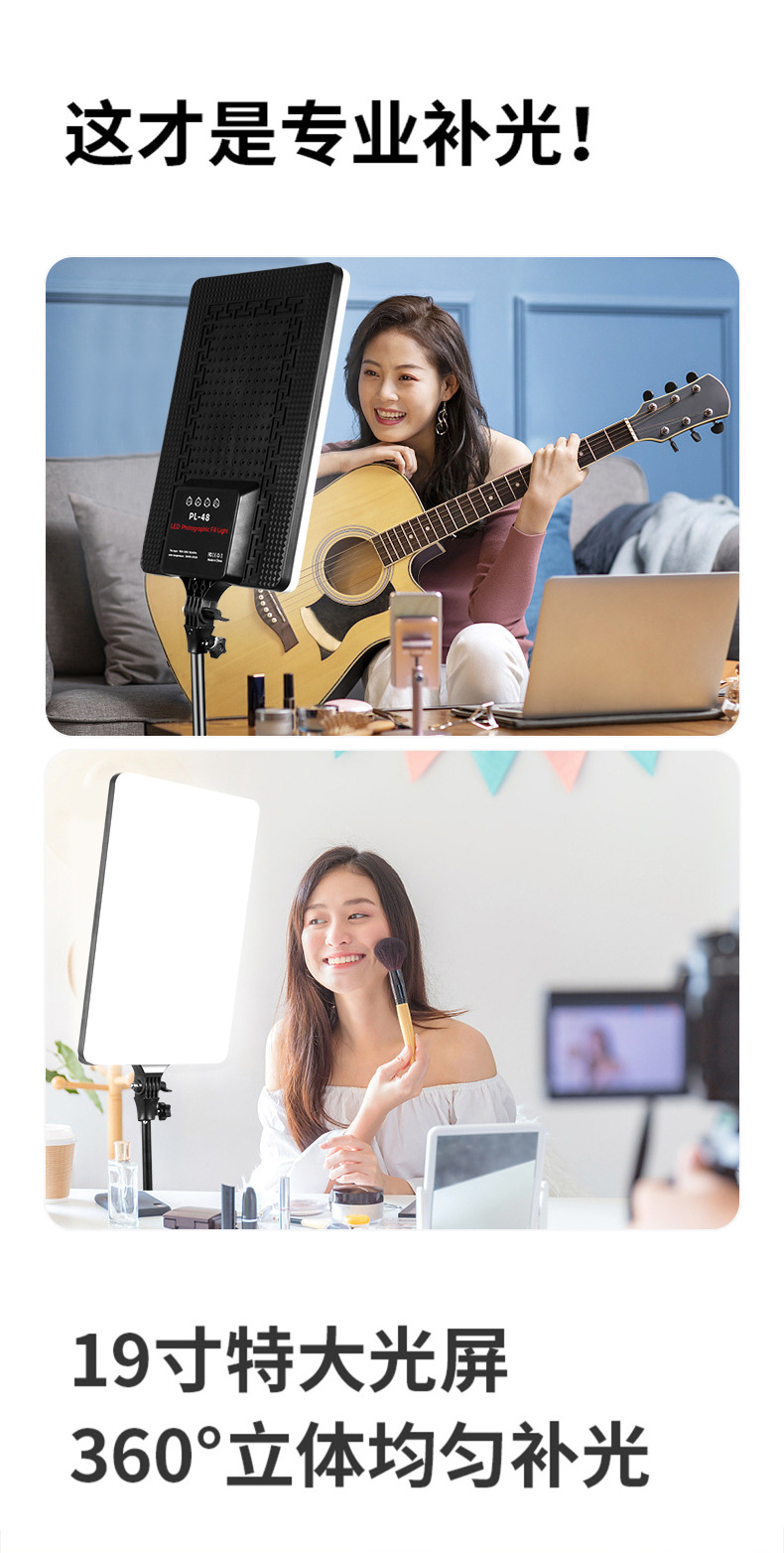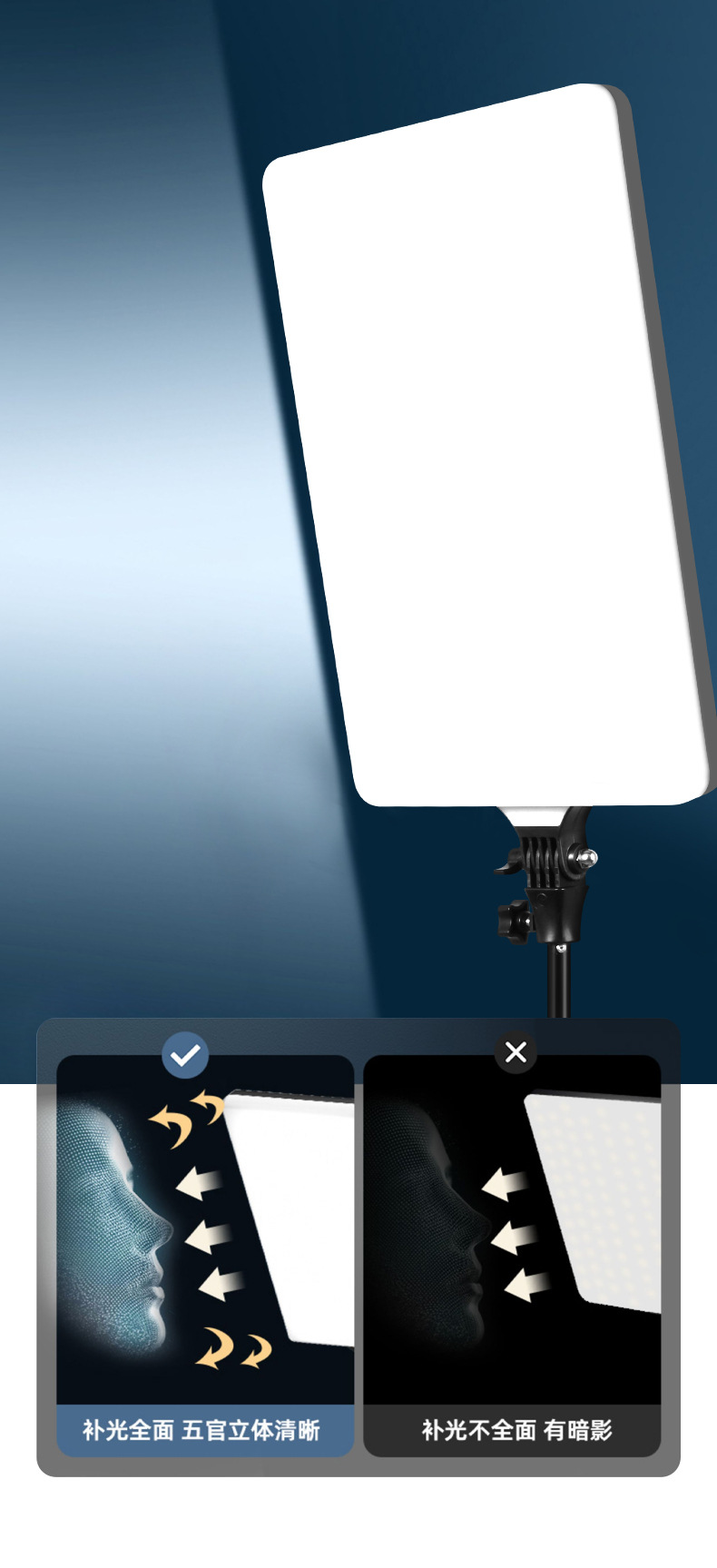 跨境新款19寸三色可调拍照柔光补光灯直播美颜方形打光平板补光灯