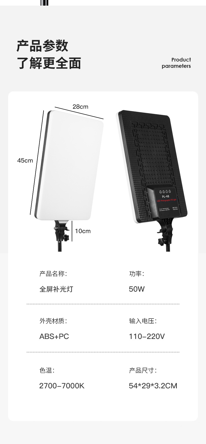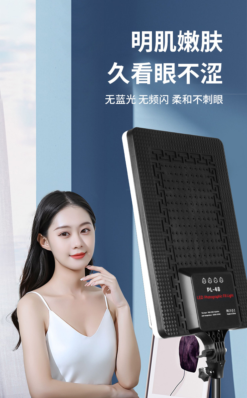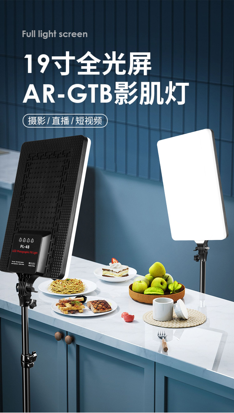 跨境新款19寸三色可调拍照柔光补光灯直播美颜方形打光平板补光灯