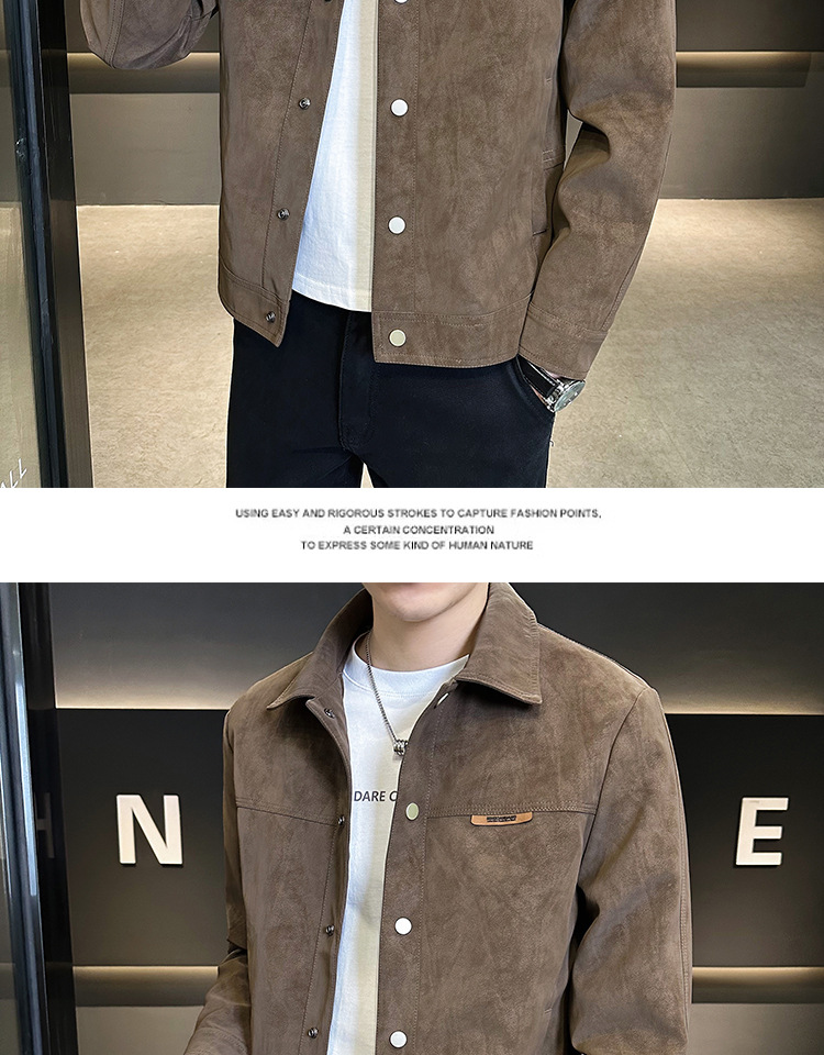 春秋季夹克男2025新款痞帅潮牌感翻领麂皮春装上衣服男士外套