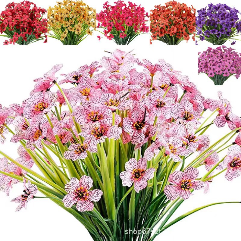 亚马逊跨境仿真花5头春草花现代装饰假花水草兰花盆栽5叉小菊