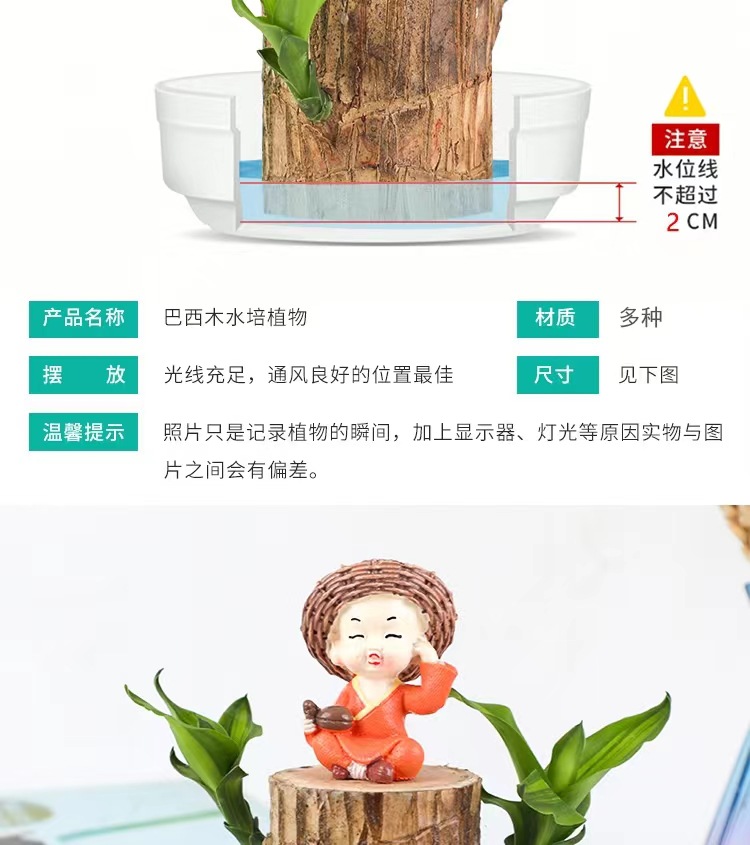 巴西木水养四季幸运木格鲁特绿植盆栽小树人带芽室内水培好养植物