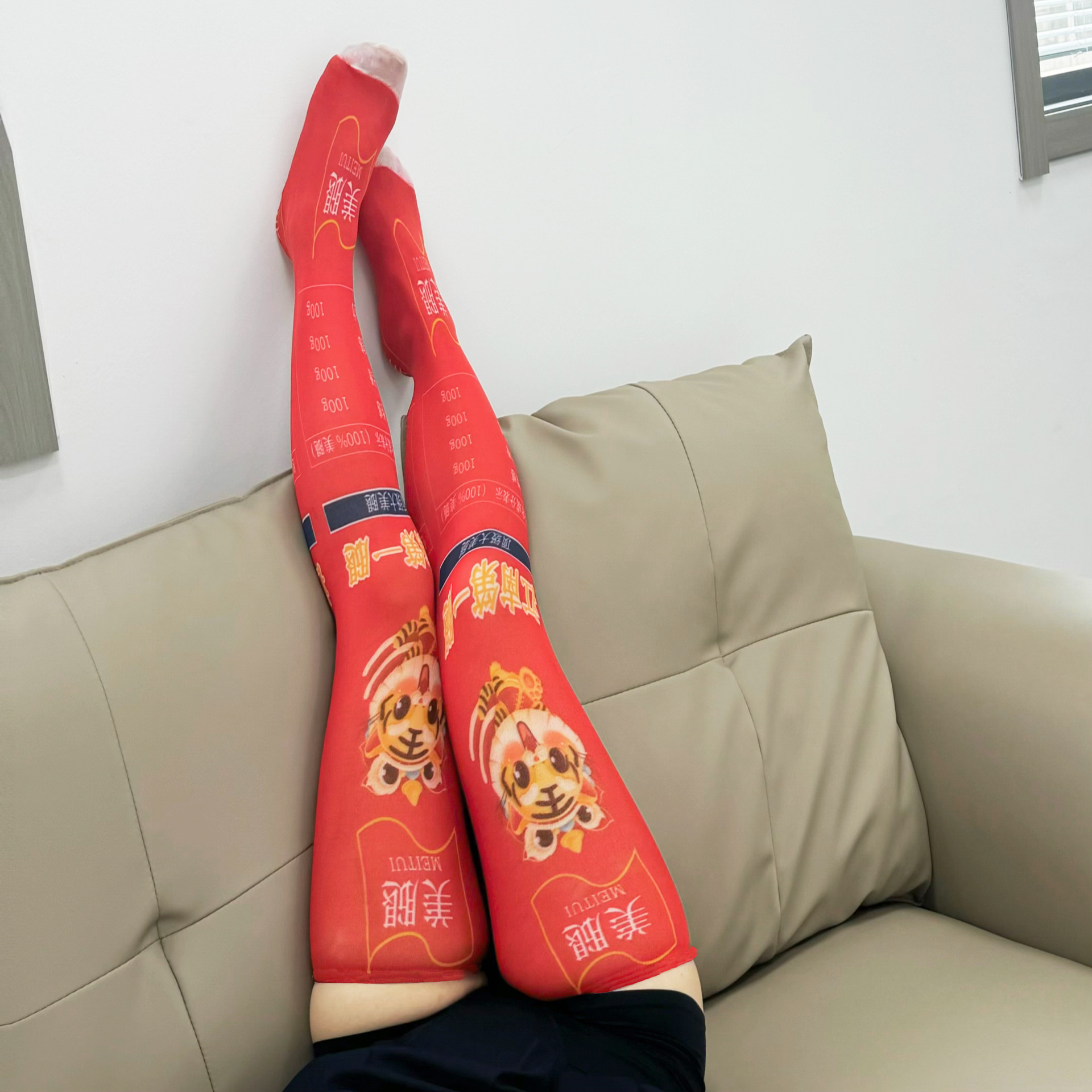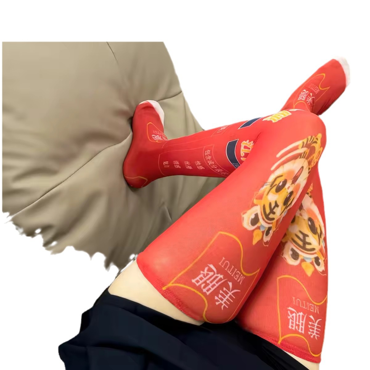双汇王中王火腿肠印花薄款性感长筒丝袜创意过膝袜二次元中筒袜子