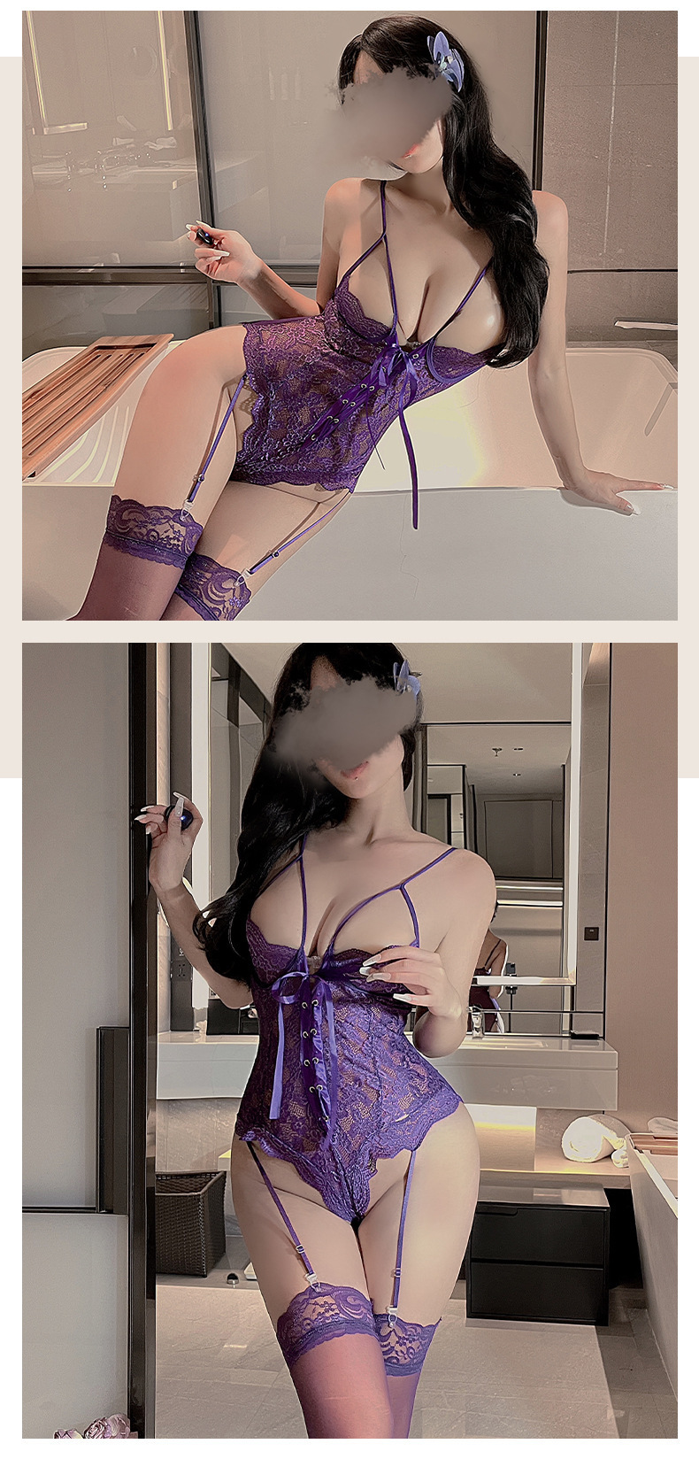 紫色韵味性感轻欧美薄款蕾丝绑带连体衣收腰显瘦情趣内衣大码套装
