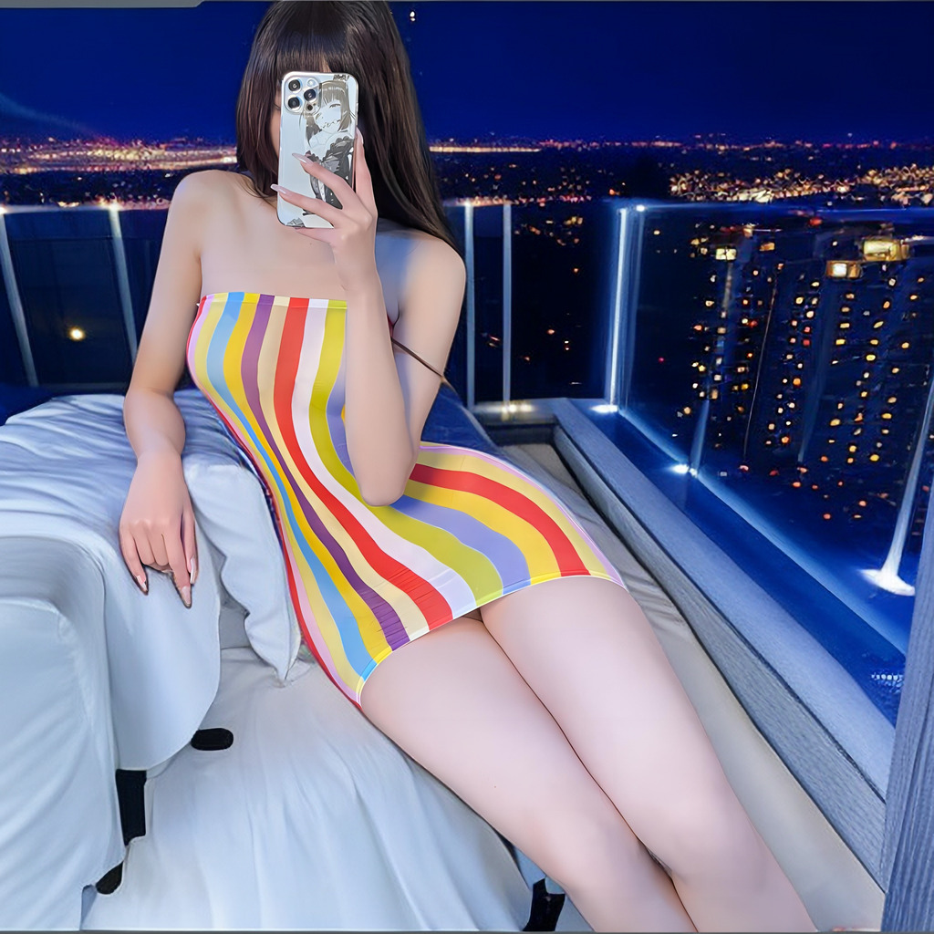 情趣丝袜免脱开裆包臀裙彩色条纹袜手撕激情性感床上火辣调情