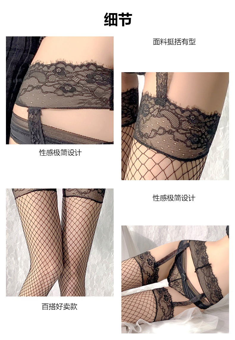 性感蕾丝吊带丝袜情趣开档免脱调情黑色性感高筒网袜火辣诱惑套装
