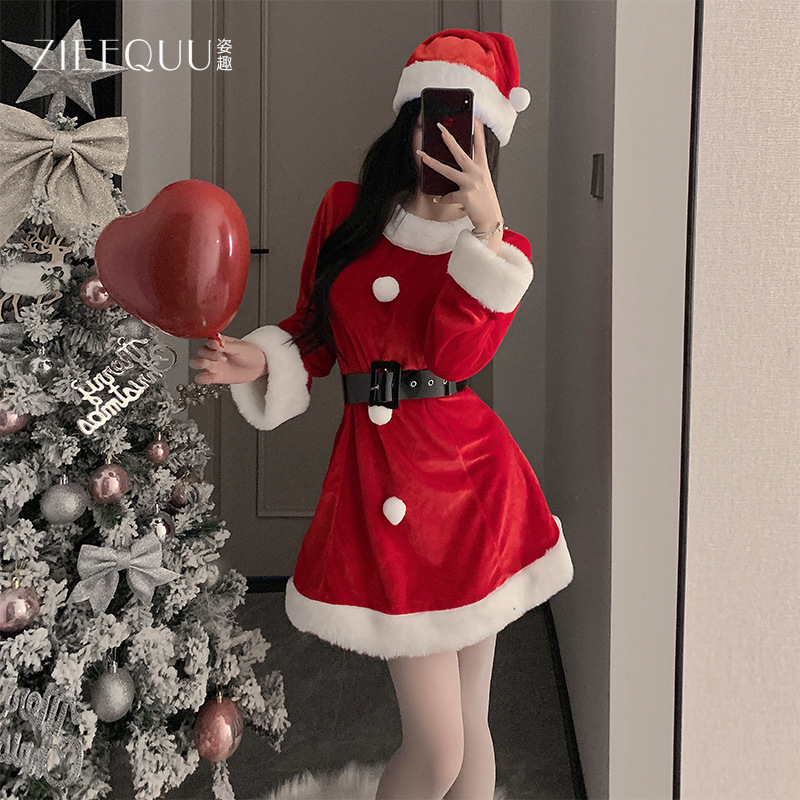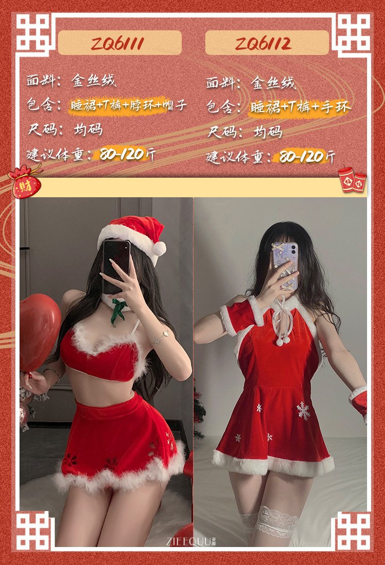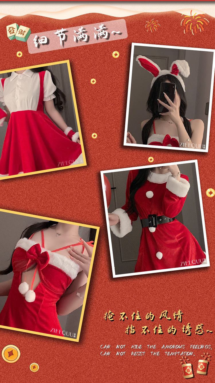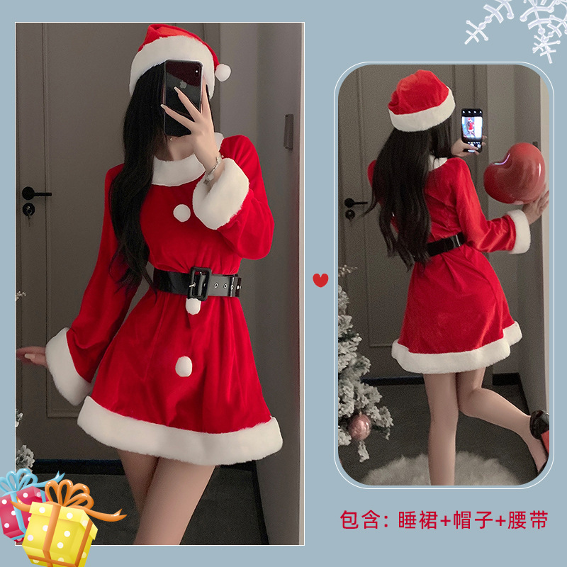 新年战袍情趣内衣性感红色丝绒睡裙套装舞会角色扮演制服诱惑大码