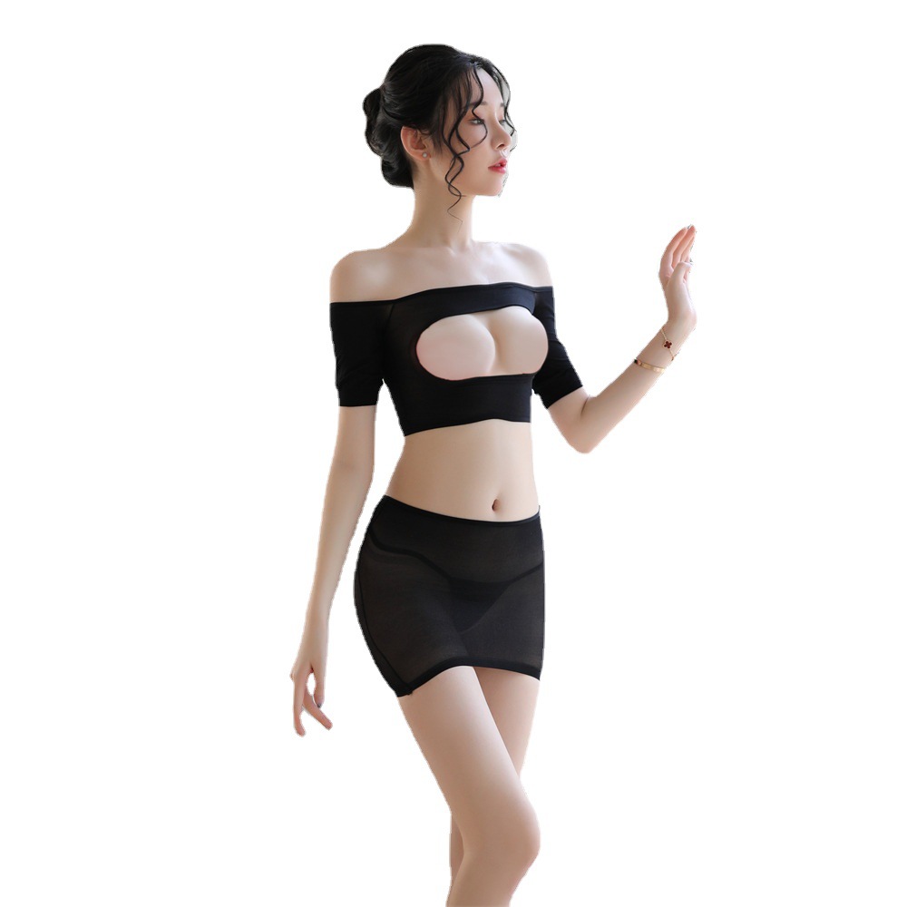 情趣内衣短袖平领露乳两件套情趣丝袜连体衣情趣睡衣套装性感8924