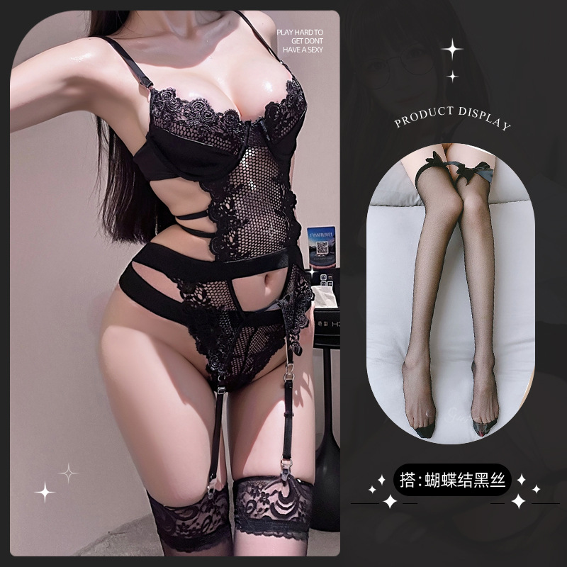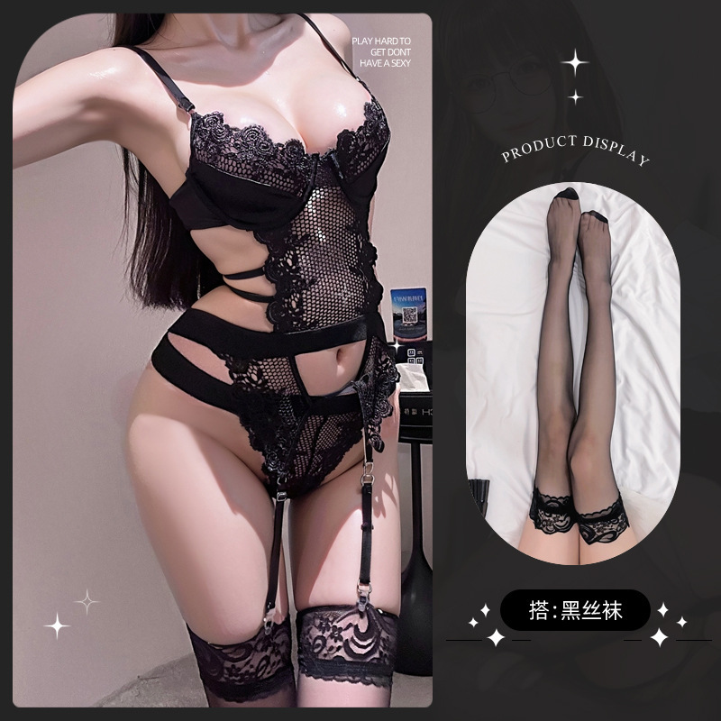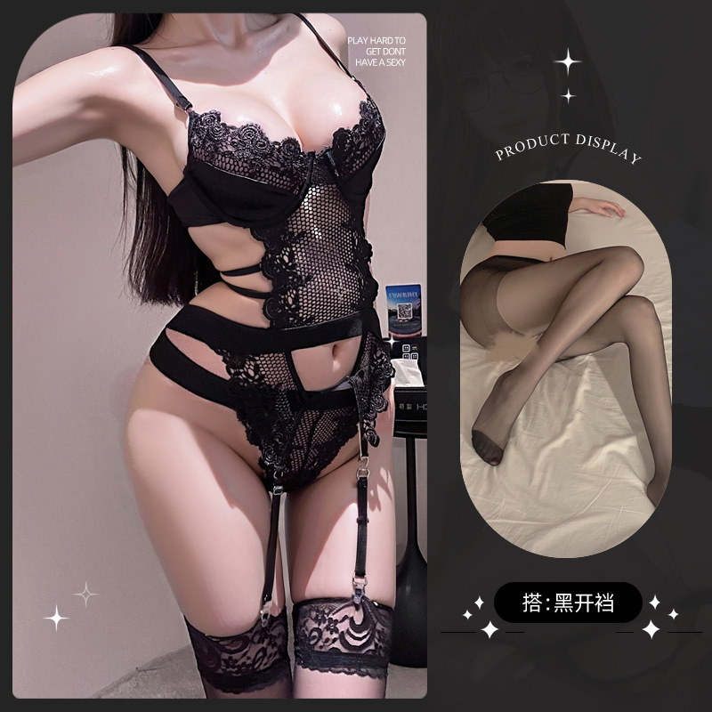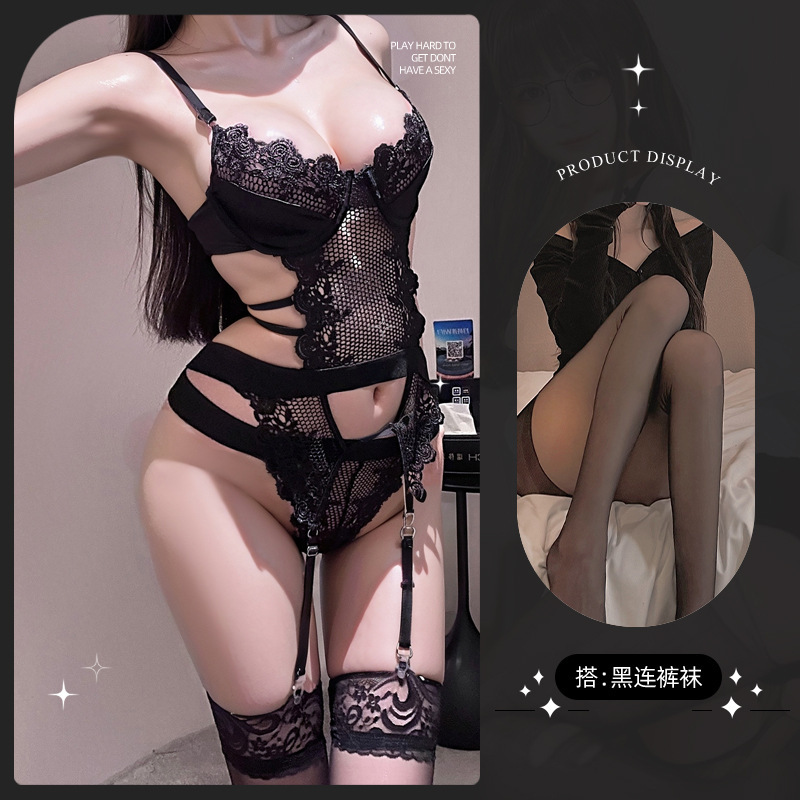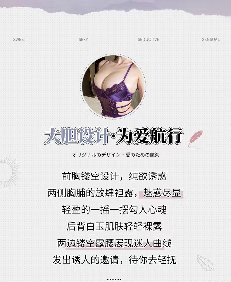 情趣内衣性感紫色辣妹带钢圈一体式连体衣纯欲制服拼接透视诱惑装