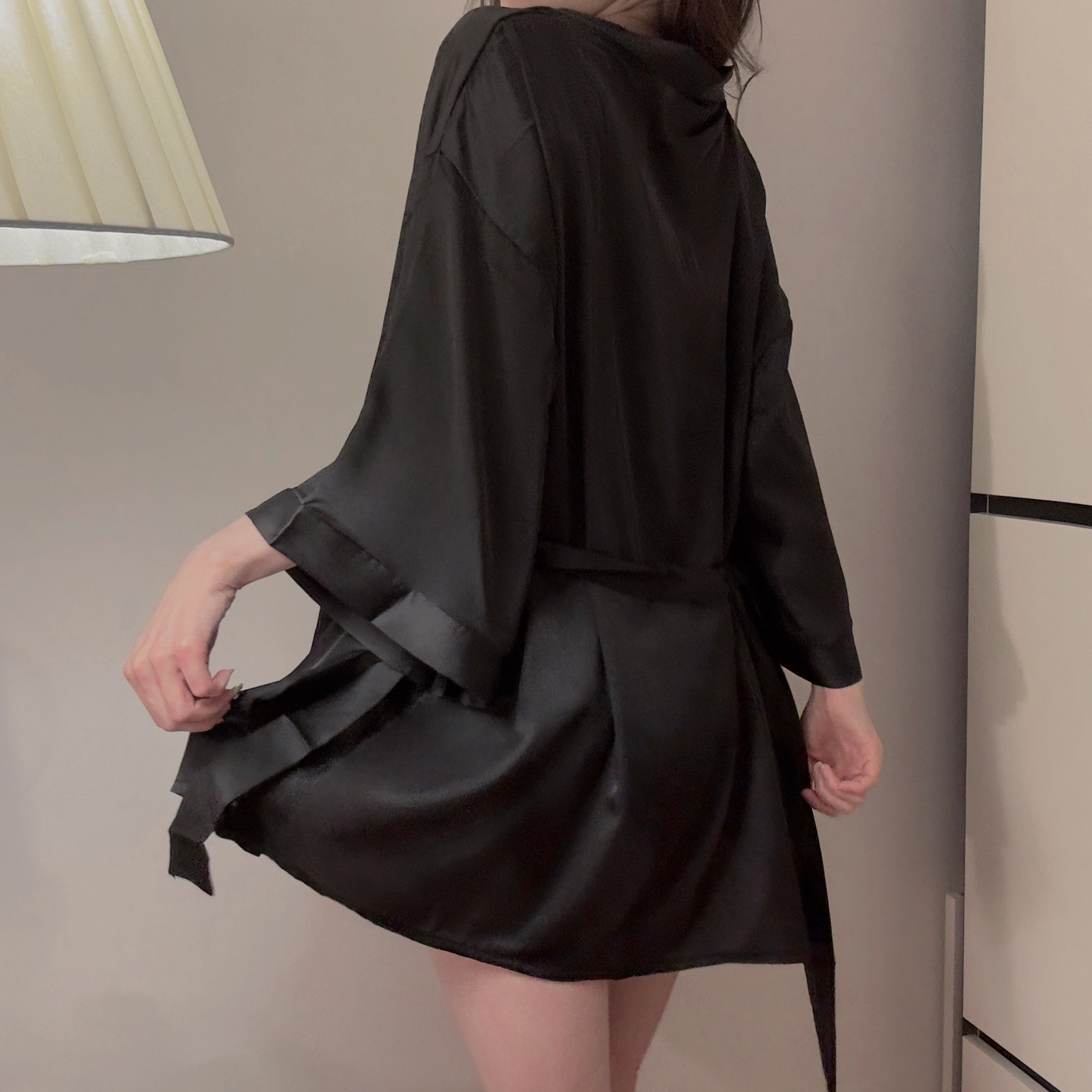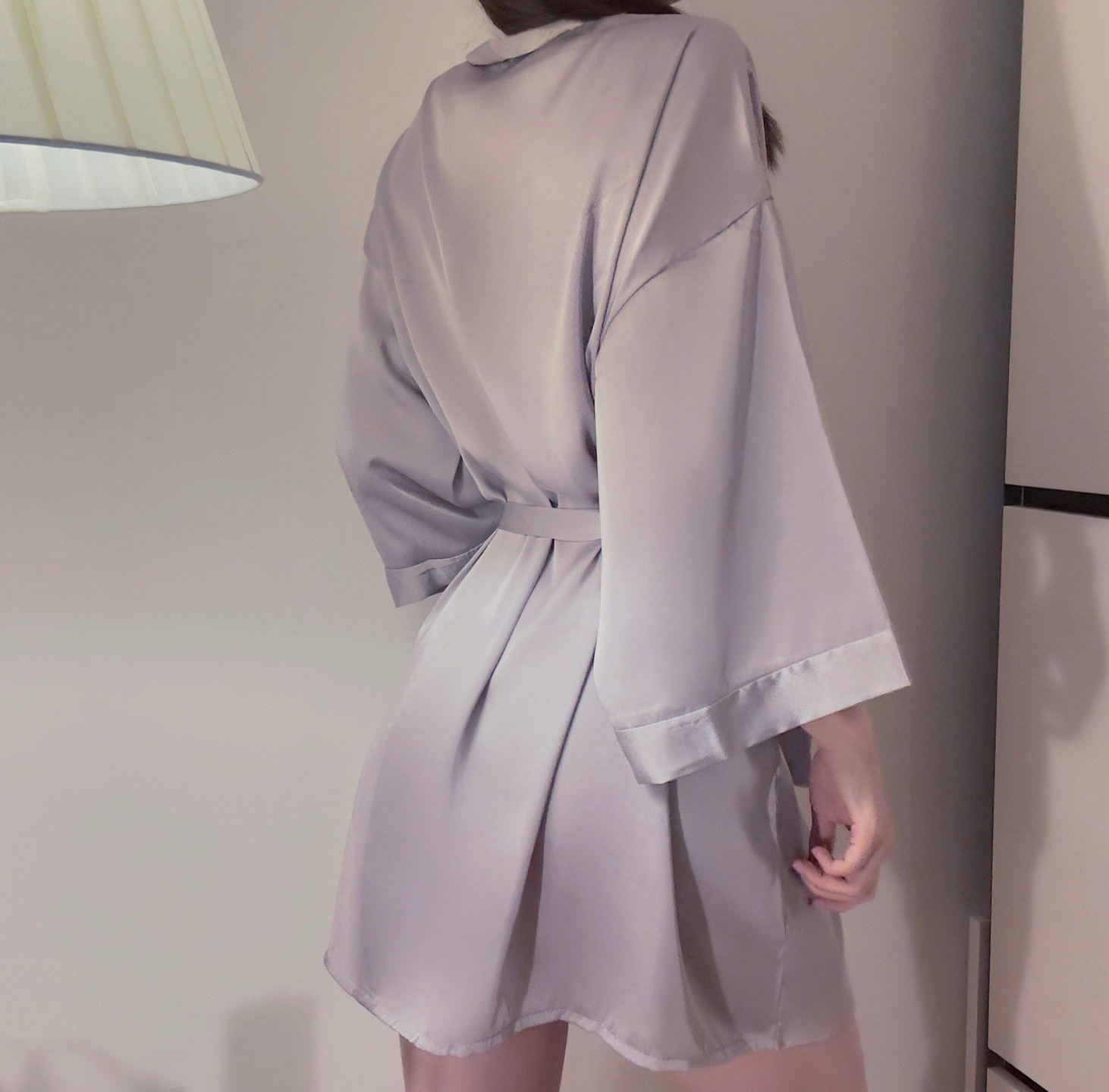 夏季性感睡衣缎面薄款开衫系带睡袍大码浴袍家居服睡袍女纯欲套装