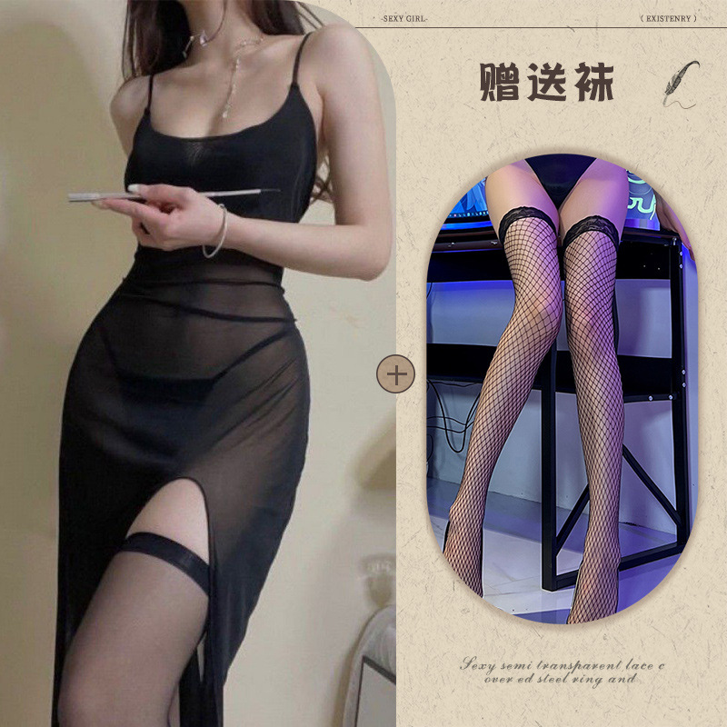 情趣内衣透明诱惑睡衣睡裙网纱透视套装极度诱惑女士性感吊带长裙