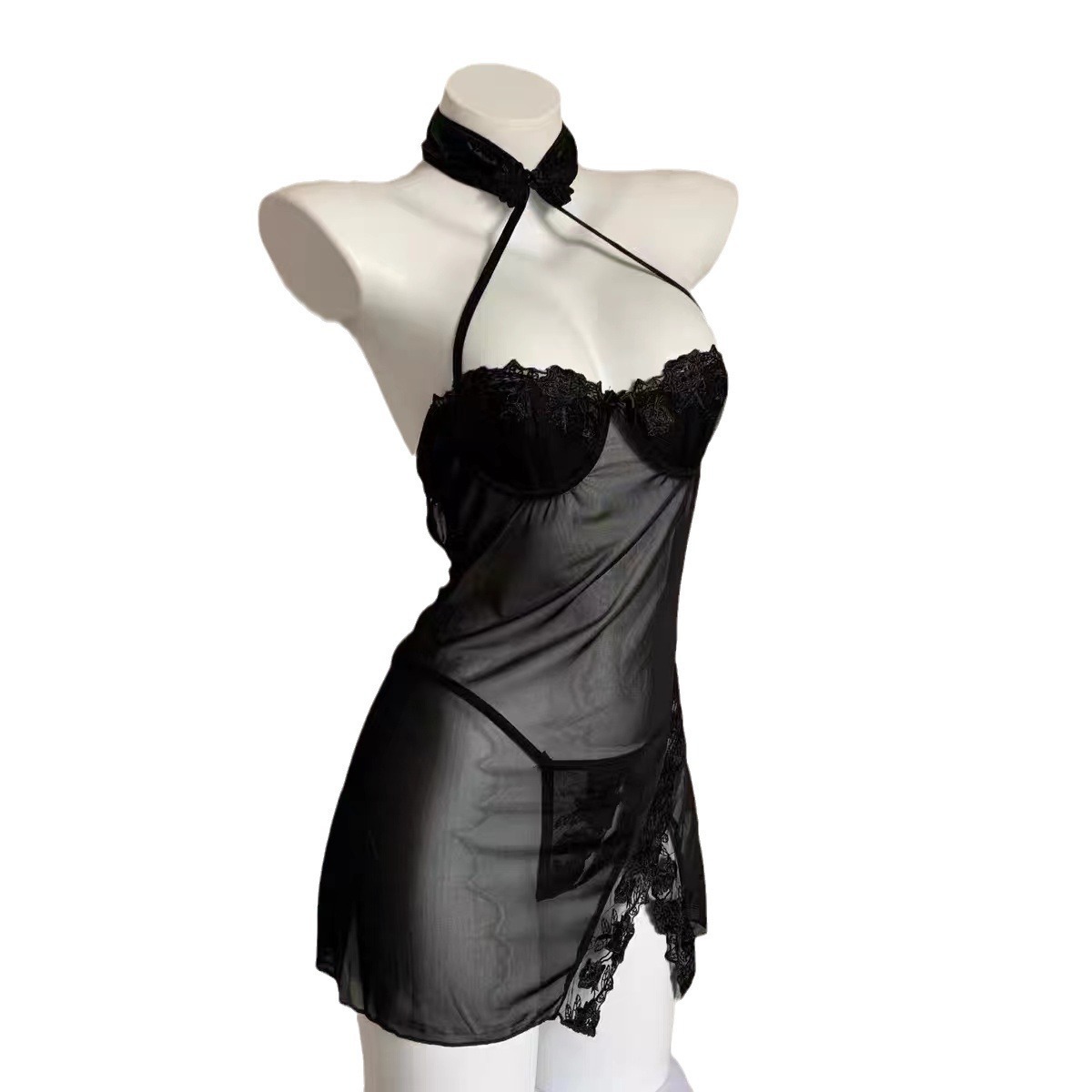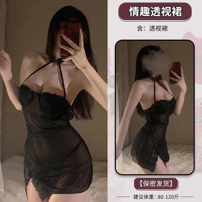 情趣内衣侧边高开叉透视情趣睡裙女性感蕾丝火辣挑逗露乳诱惑睡衣