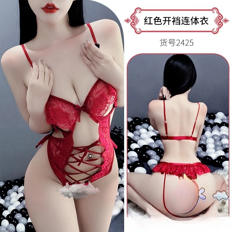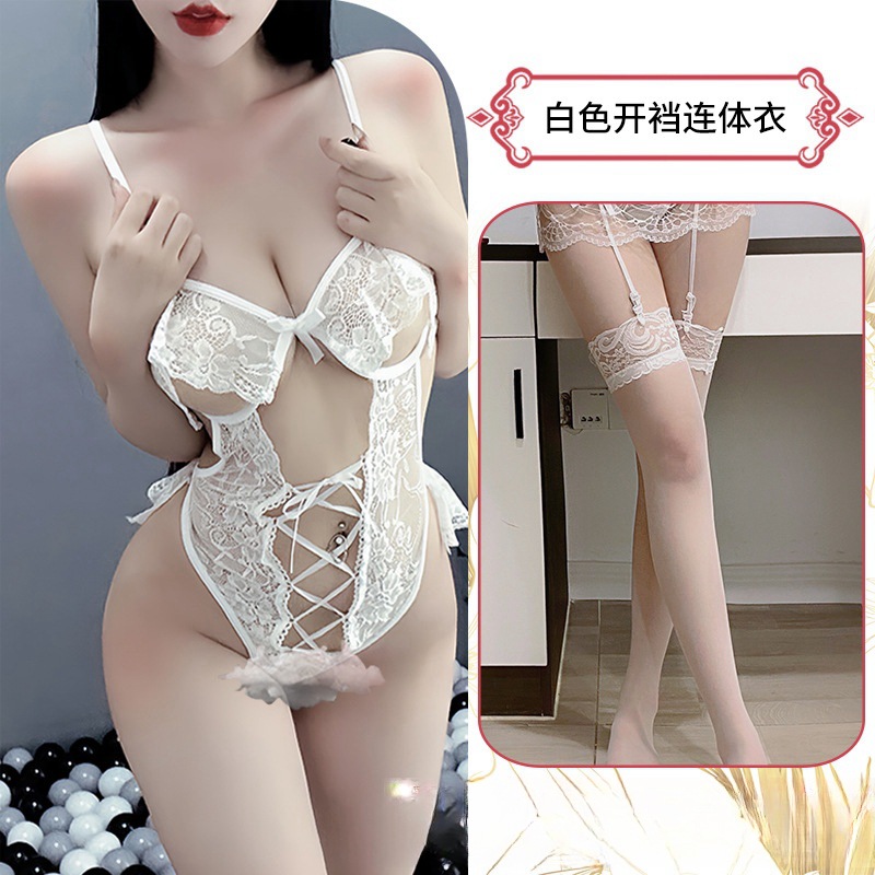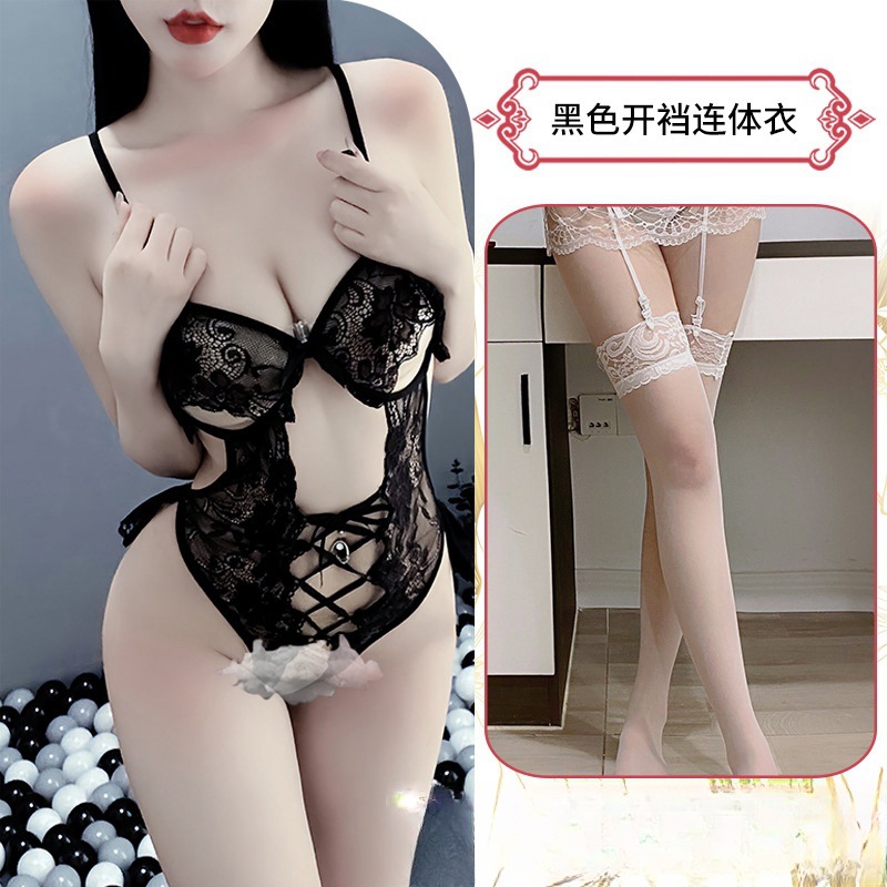 情趣内衣性感吊带蕾丝诱惑连体衣女钢托聚拢透视大码制服套装代发