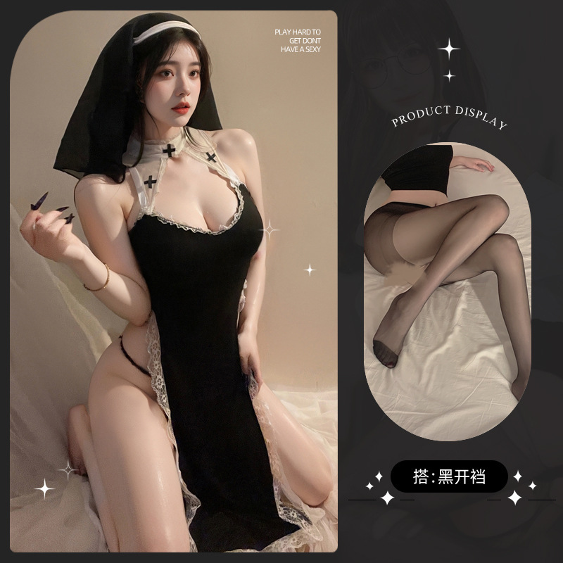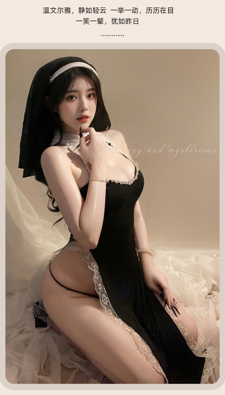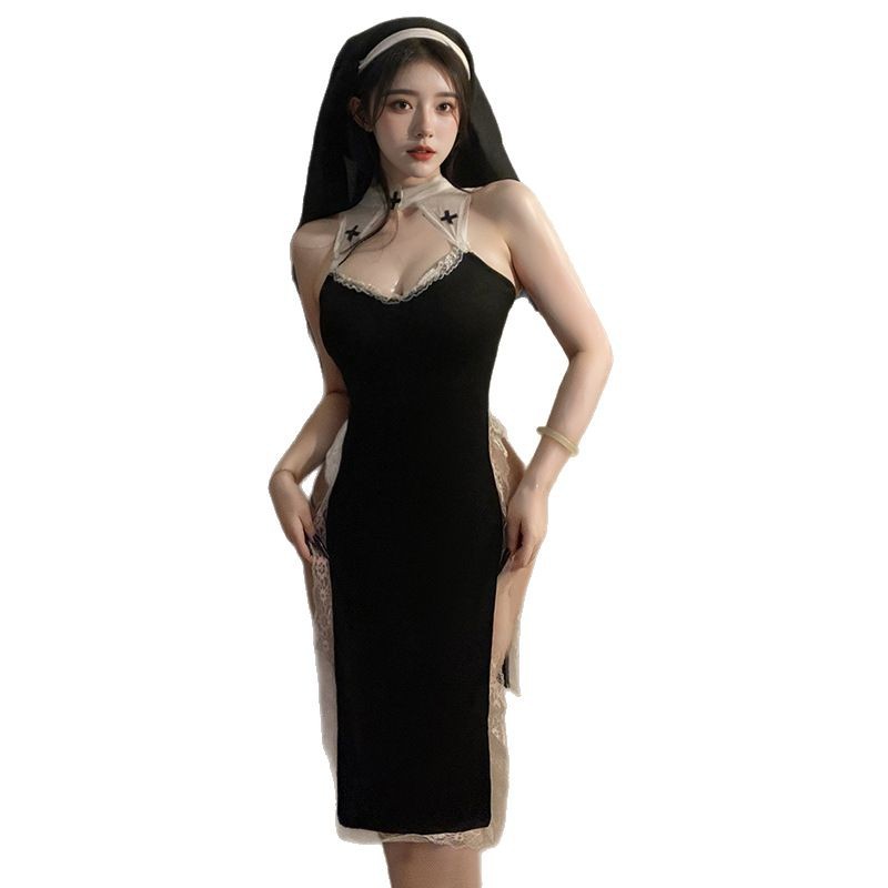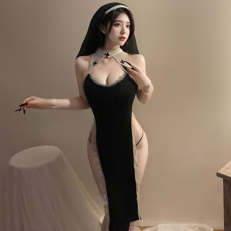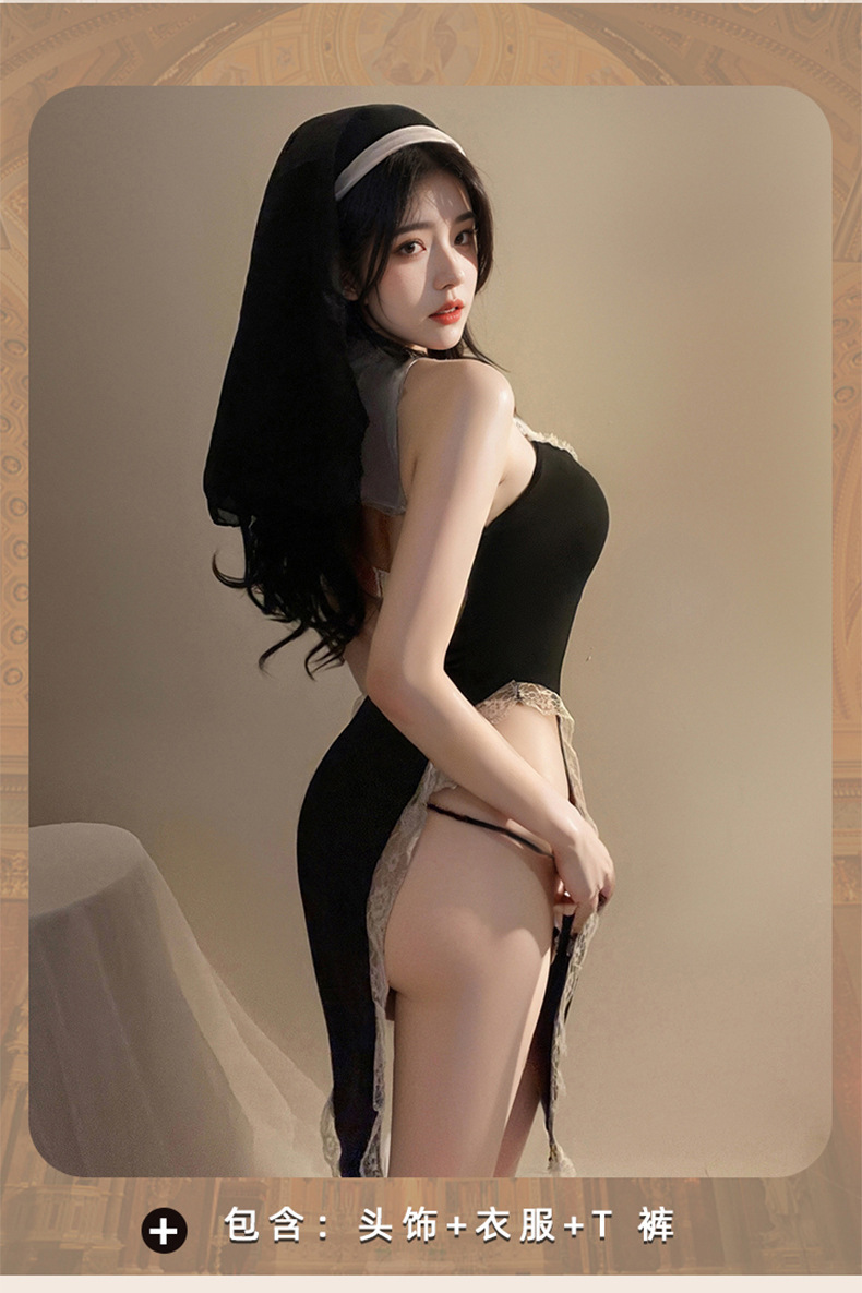 情趣内衣纯欲性感角色扮演cosplaym免脱修女高开衩蕾丝连衣裙套装