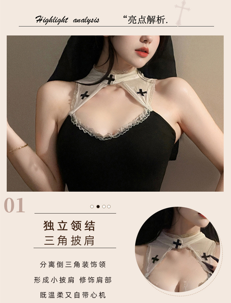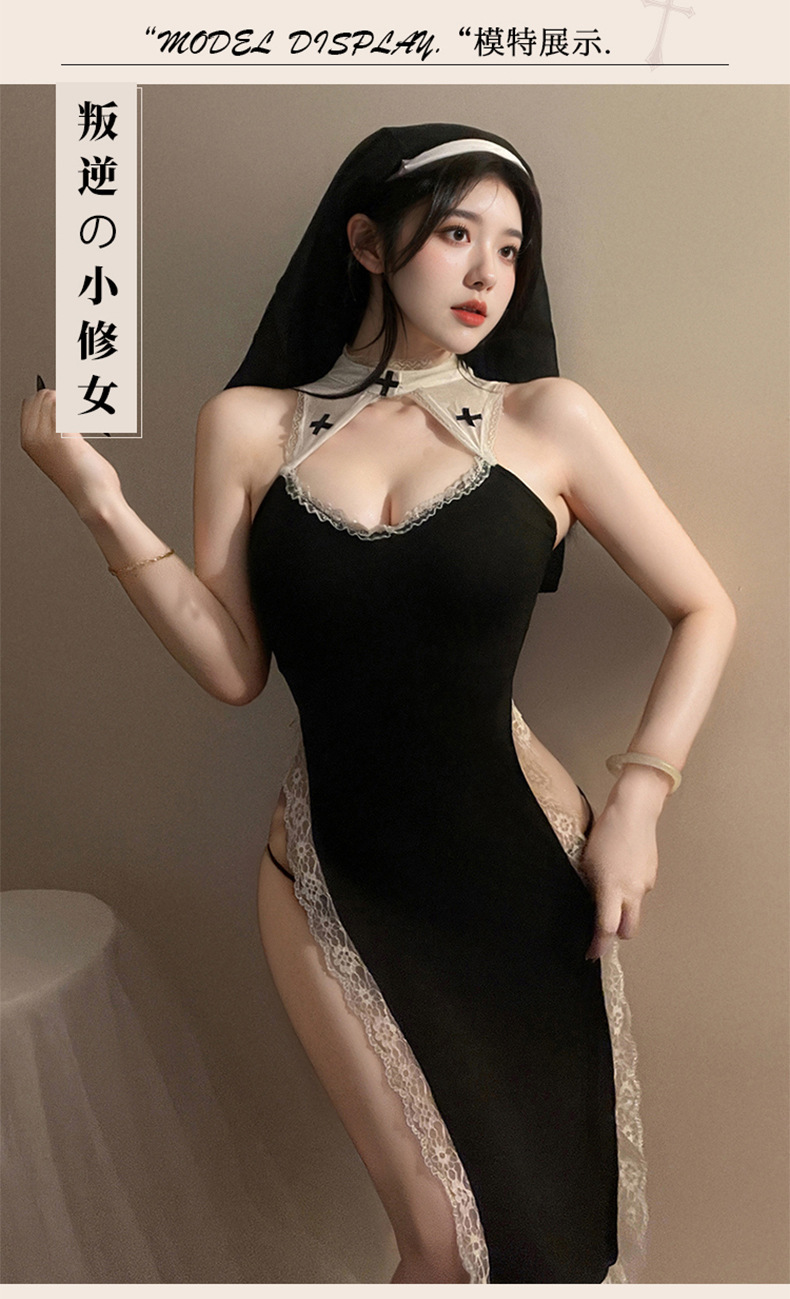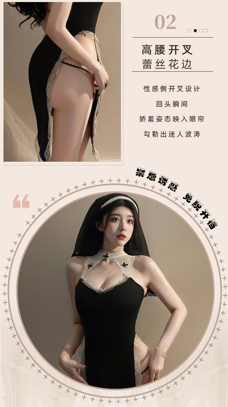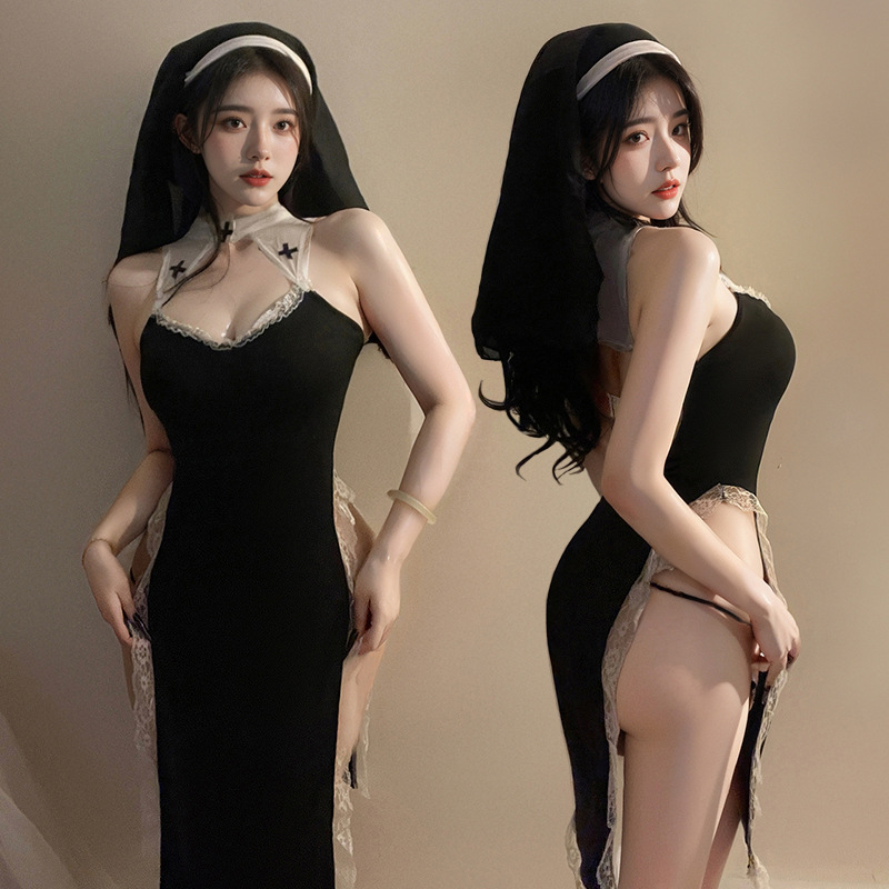 情趣内衣纯欲性感角色扮演cosplaym免脱修女高开衩蕾丝连衣裙套装