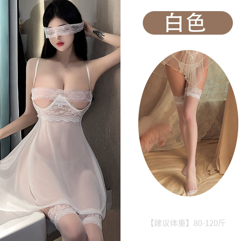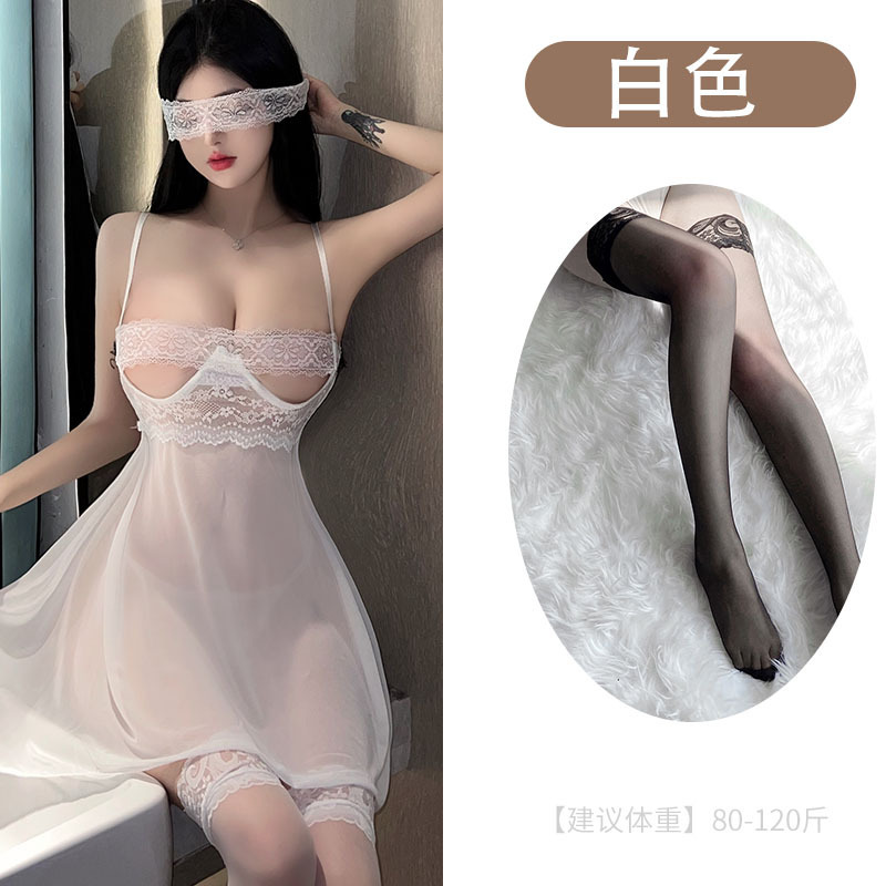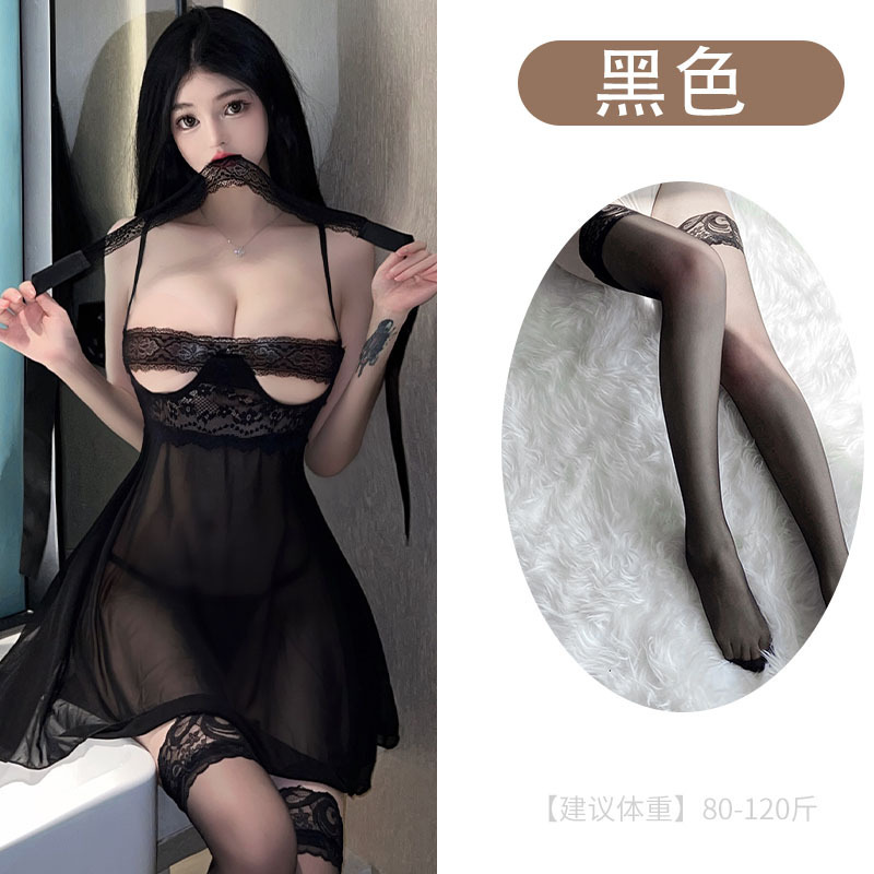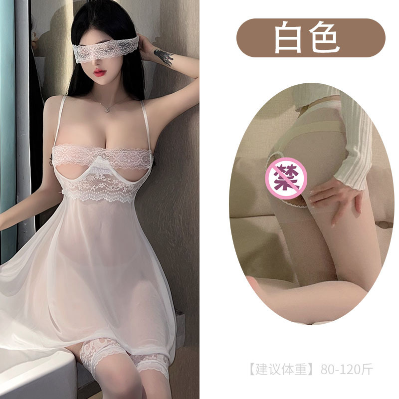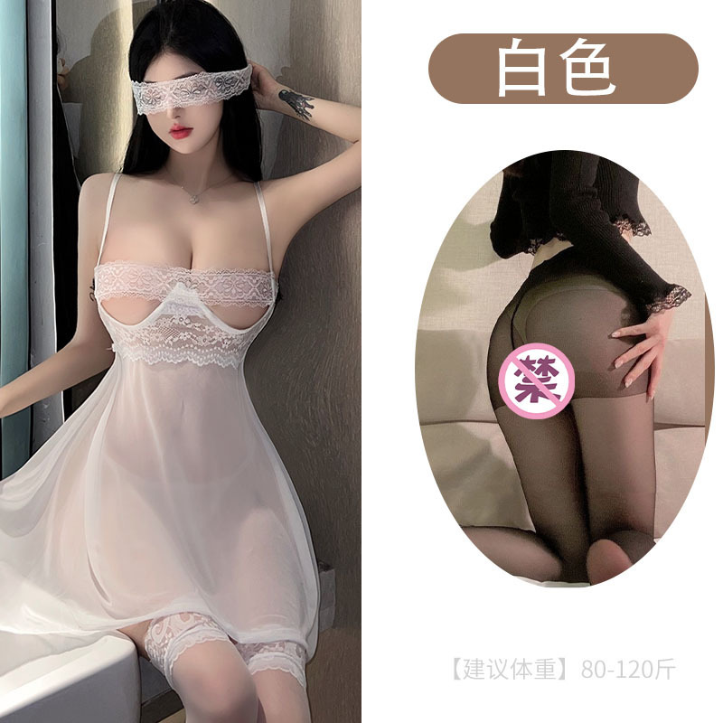 情趣内衣性感蕾丝睡裙镂空漏乳钢圈聚拢透纱纯欲睡衣激情免脱套装
