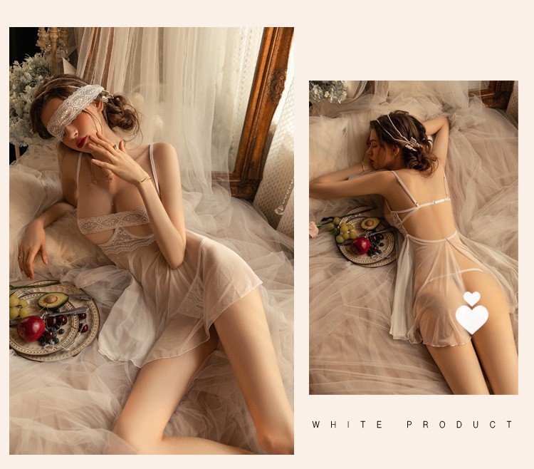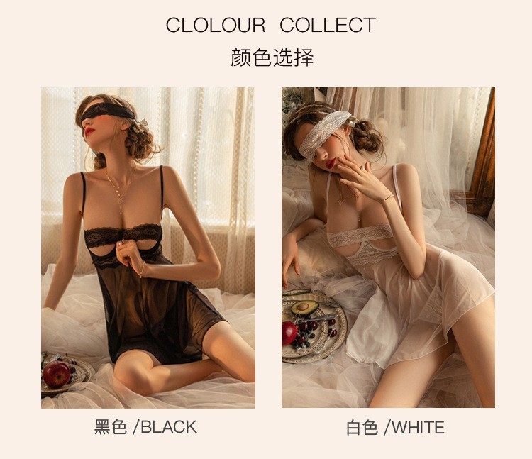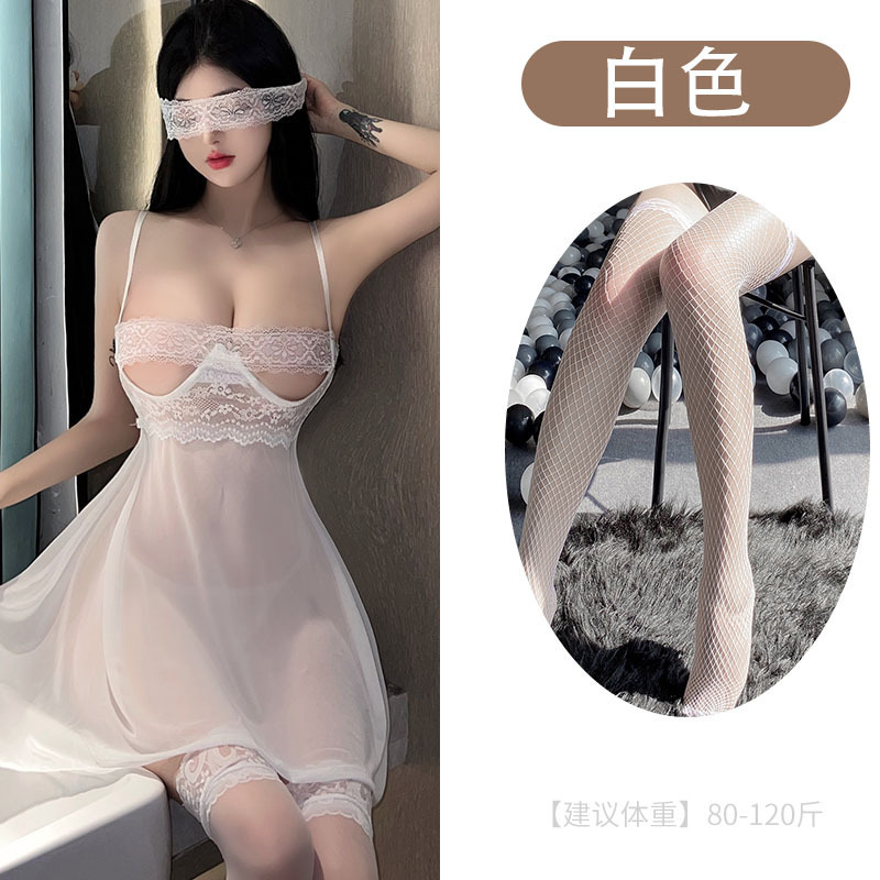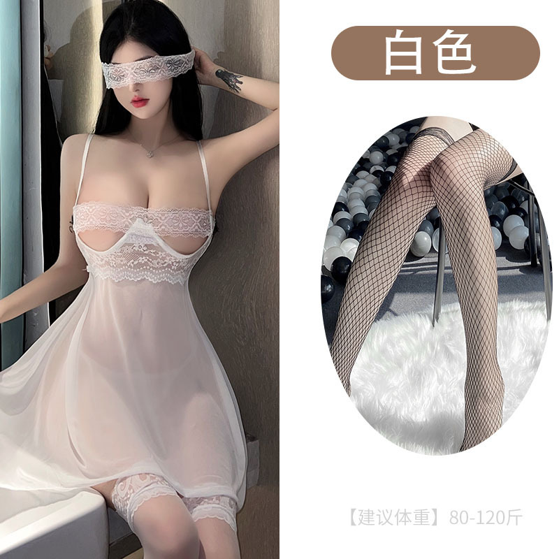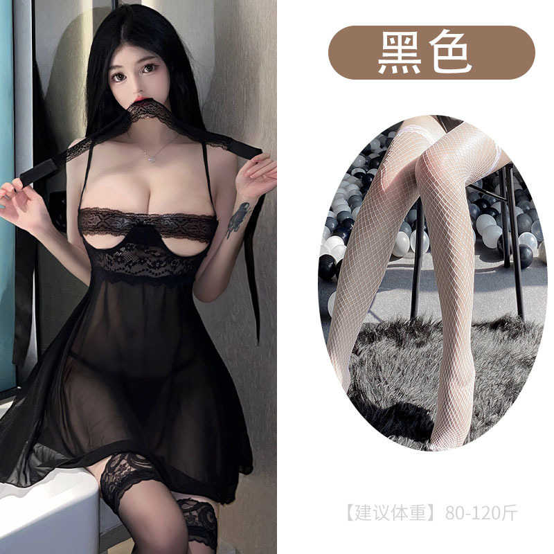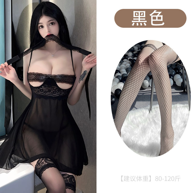 情趣内衣性感蕾丝睡裙镂空漏乳钢圈聚拢透纱纯欲睡衣激情免脱套装