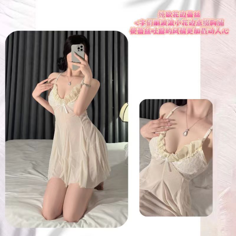 情趣内衣性感吊带连衣裙美背居家服纯欲透视蕾丝诱惑小胸大码制服