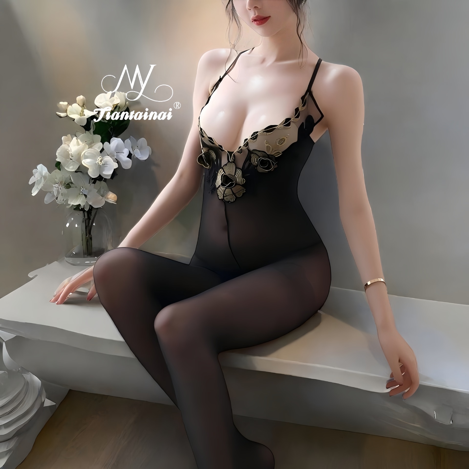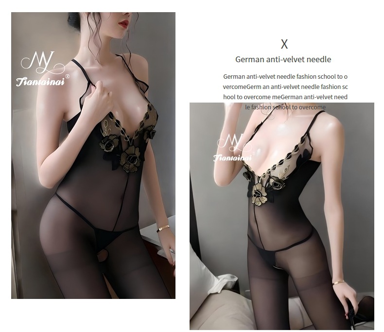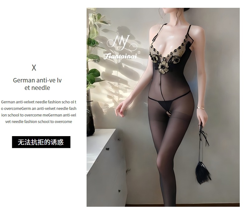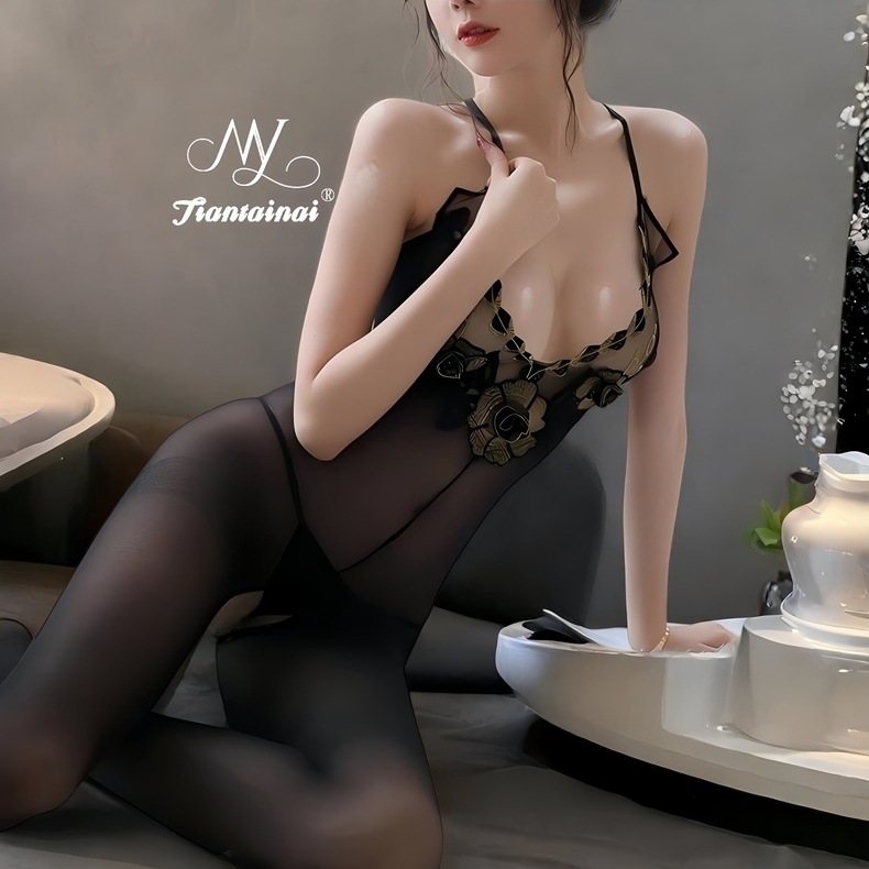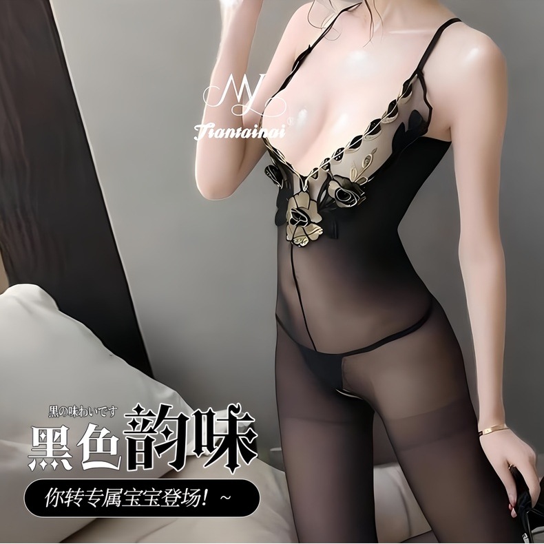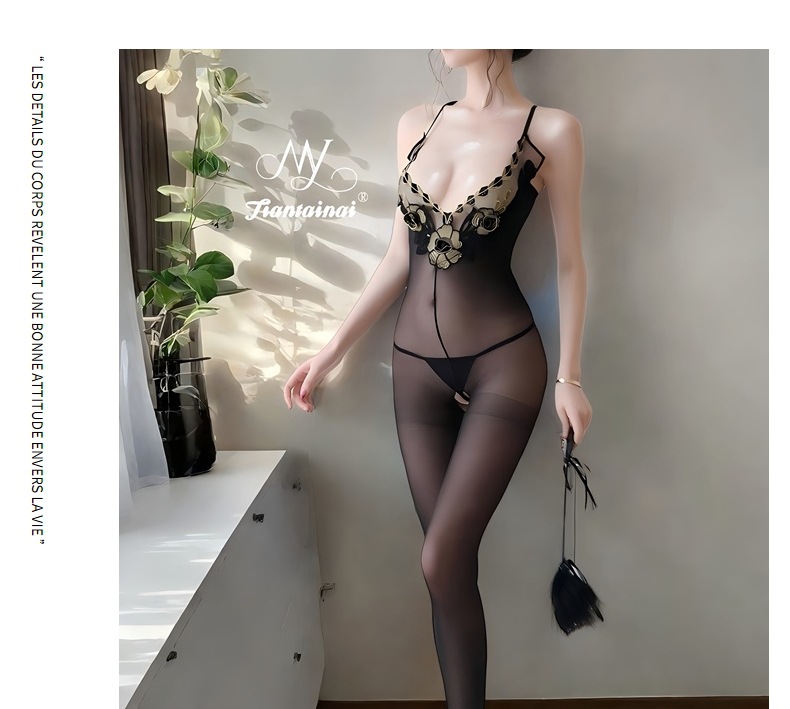 情趣内衣性感刺绣蕾丝花边丝袜连体衣大码纯欲诱惑开裆丝袜连体衣