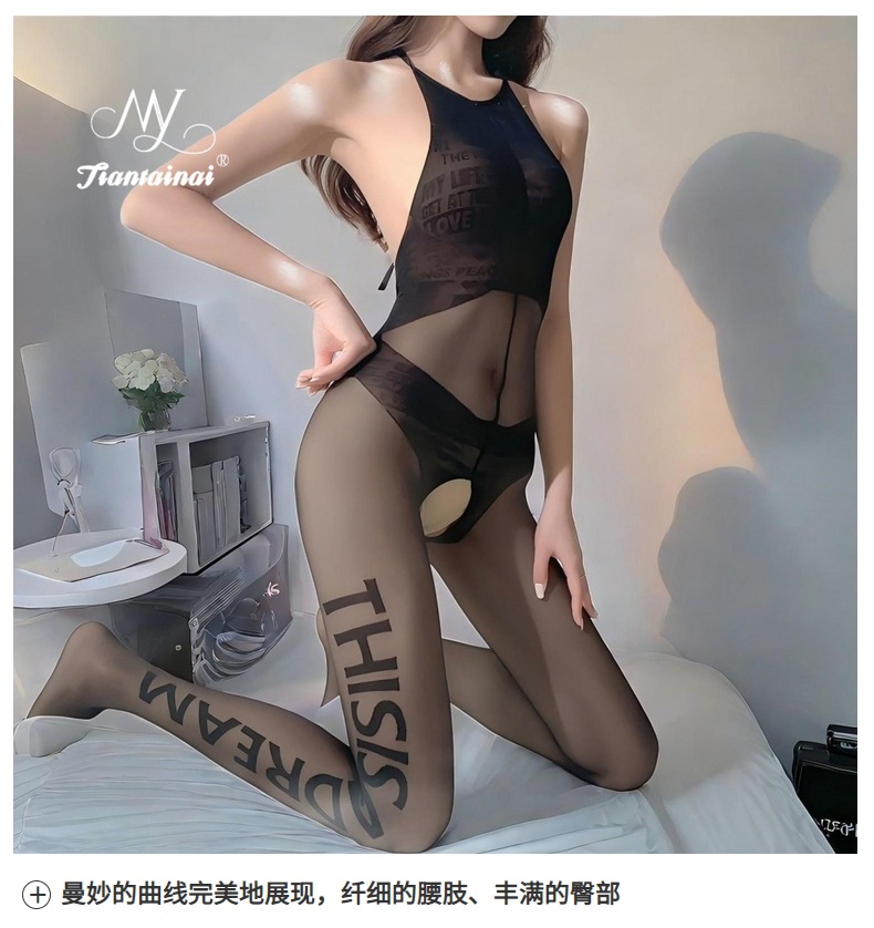 情趣内衣性感开裆丝袜连体衣透明诱惑套装纯欲漏背字母袜可撕扯女
