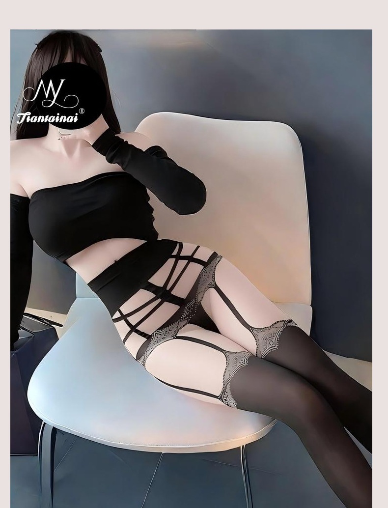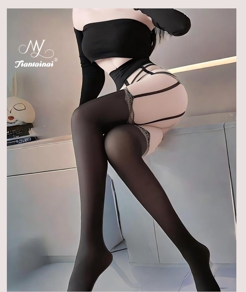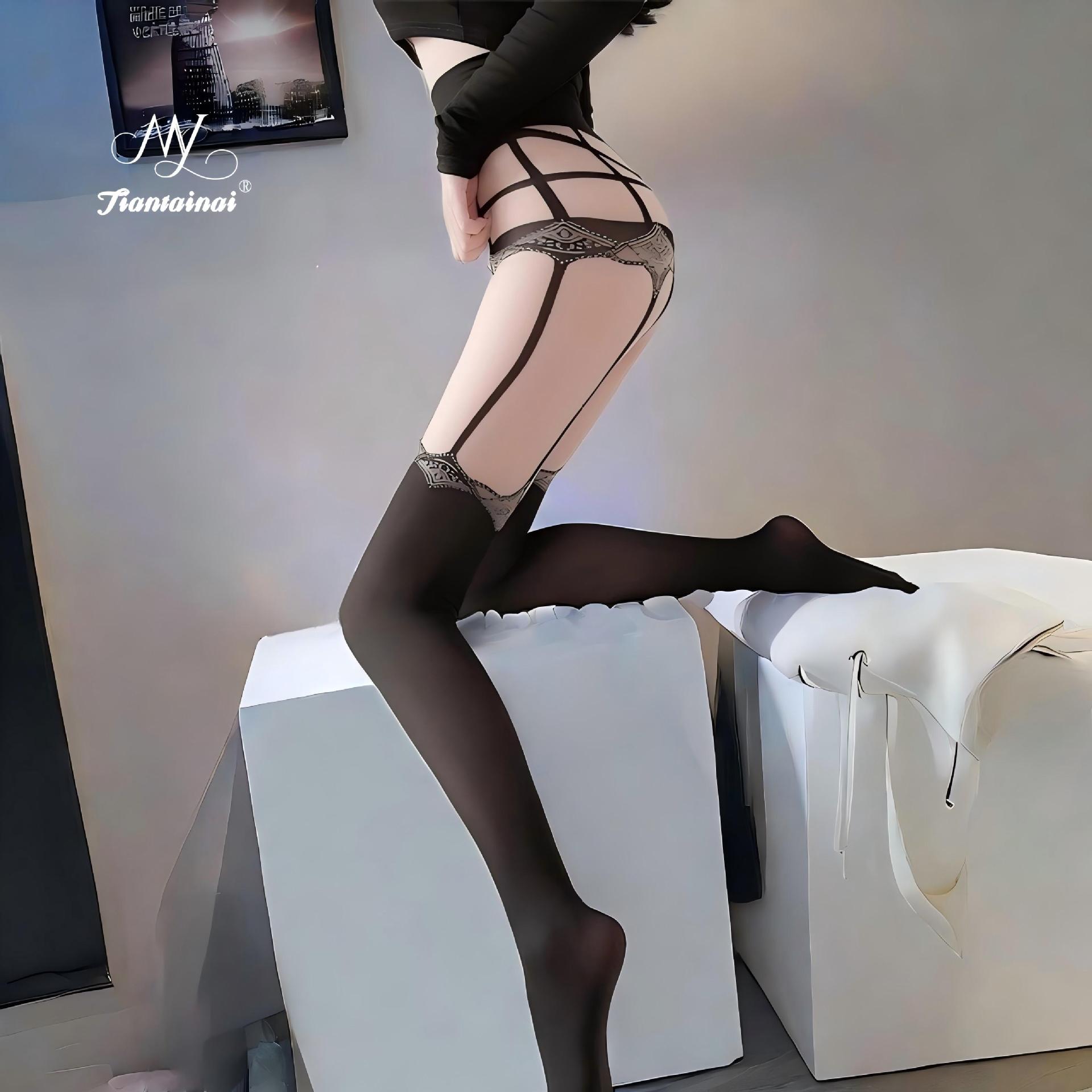 情趣丝袜花中花性感纯欲连袜裤黑丝诱惑开档免脱吊带袜宽腰捆绑袜