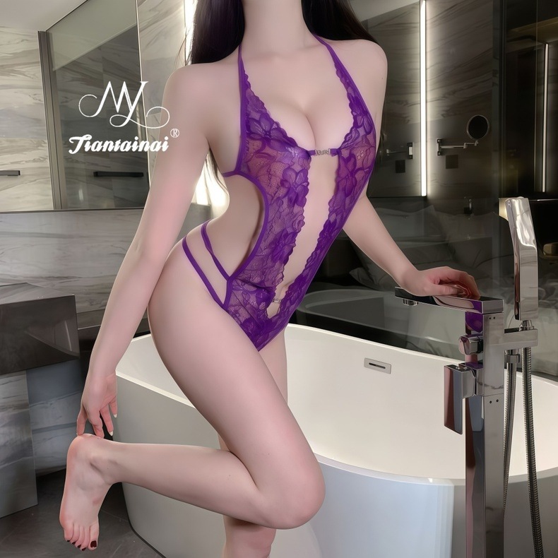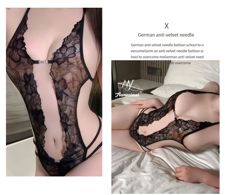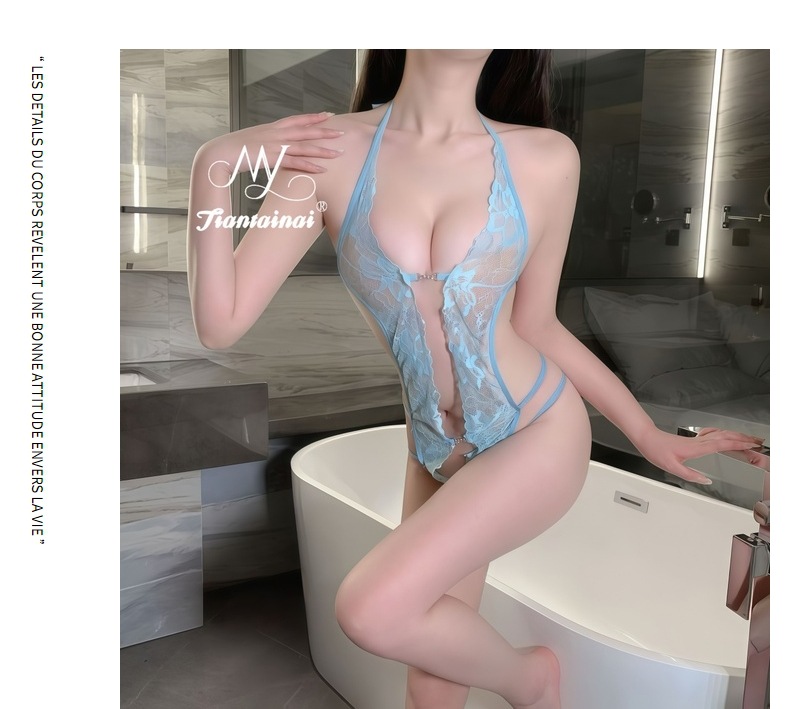 纯欲性感挂脖蕾丝内衣透视免脱情趣连体衣火辣诱惑大码套装内衣女