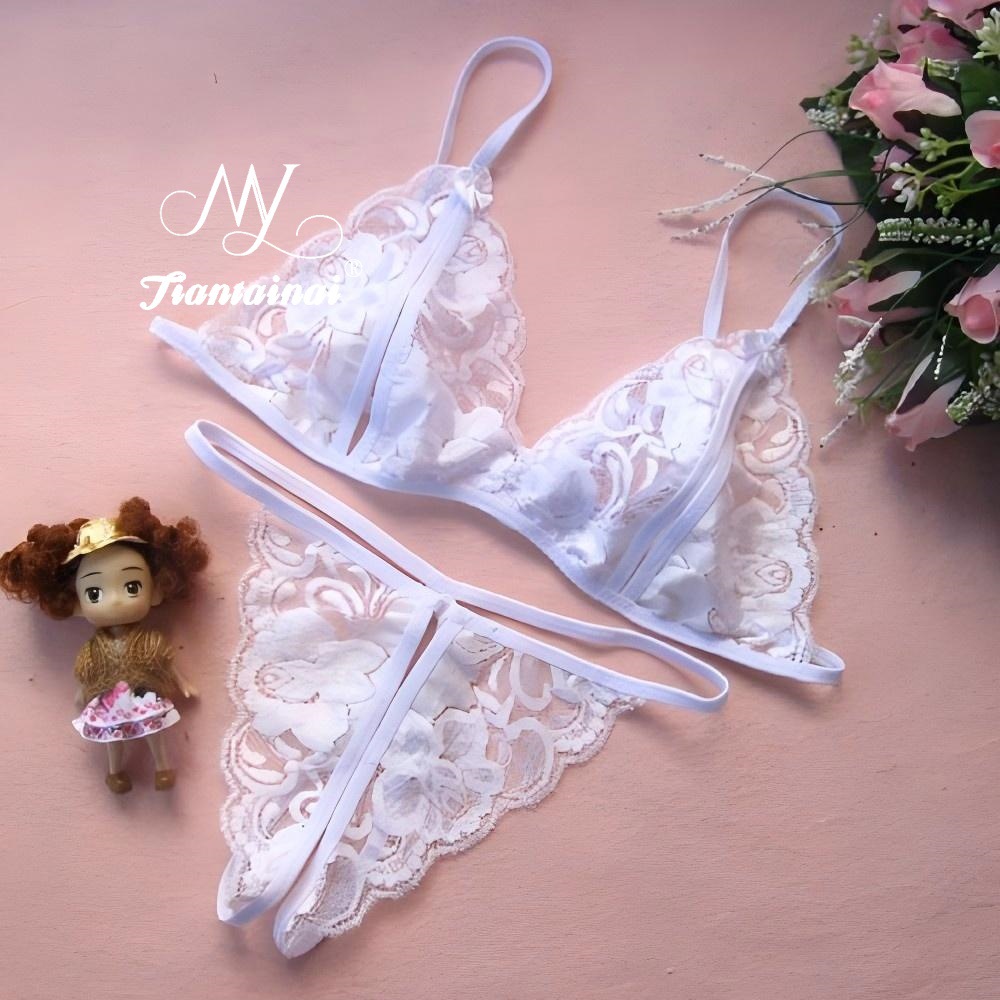 性感诱惑蕾丝透明女开档诱惑三点式女式情趣内衣开裆套装一件代发