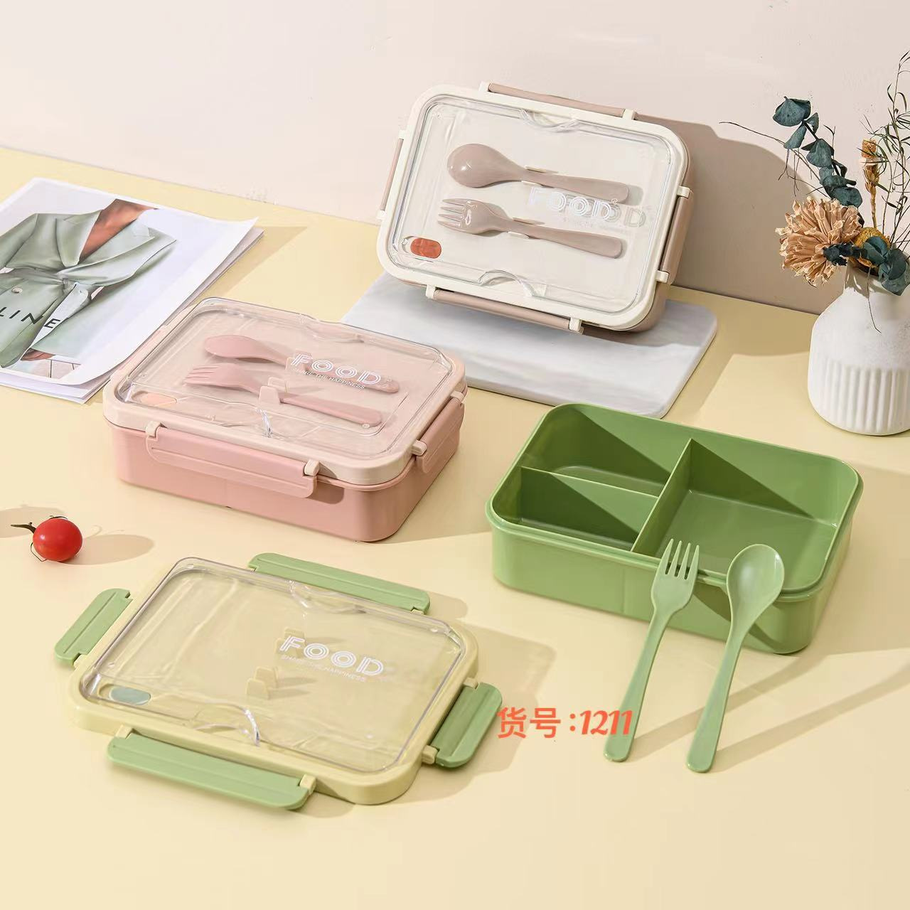 便当盒食品保鲜盒长方形多格小麦秸秆学生成人带饭餐盒厂家直供