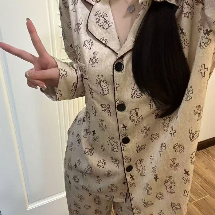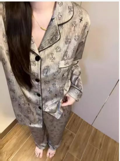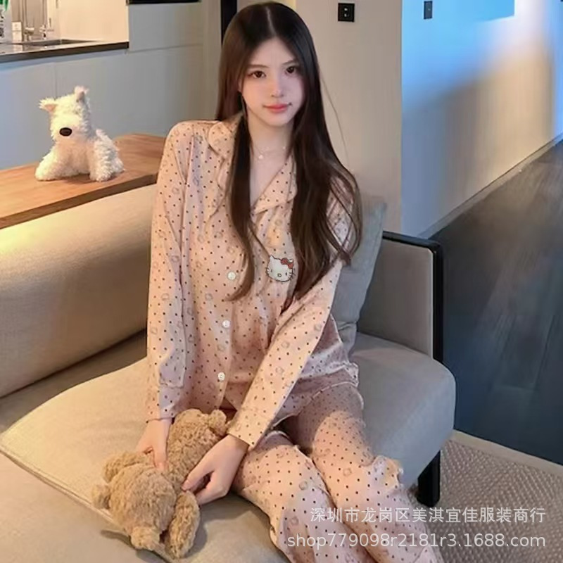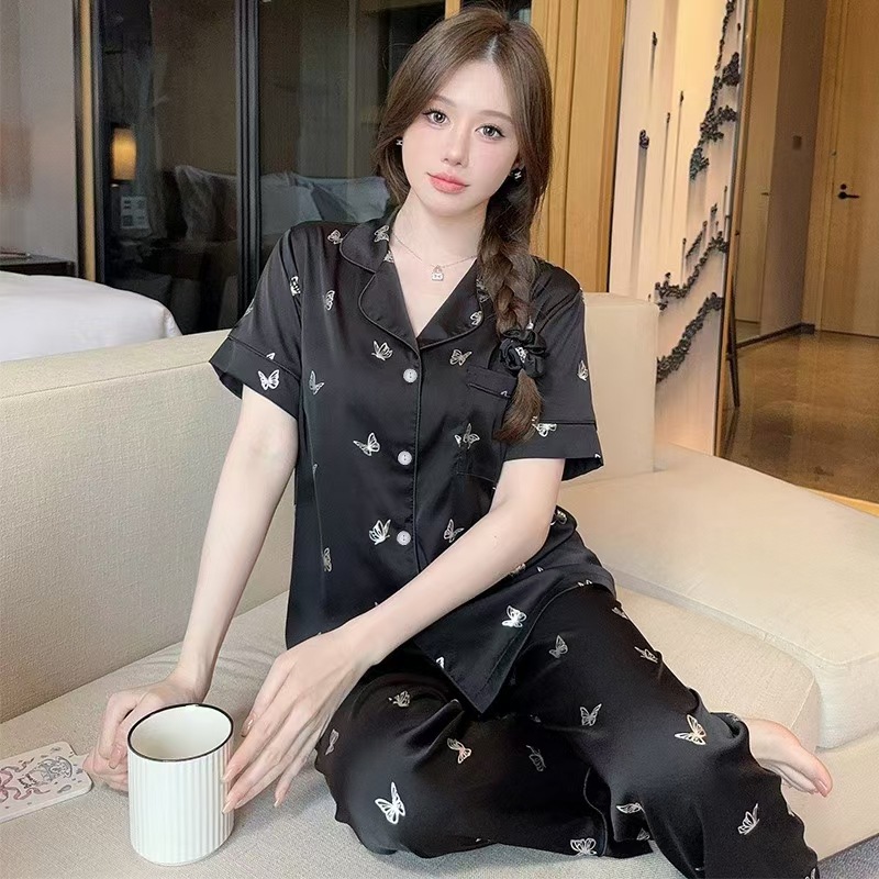 sleepwear外贸睡衣女货源春秋季冰丝少女家居服长袖长裤仿真丝