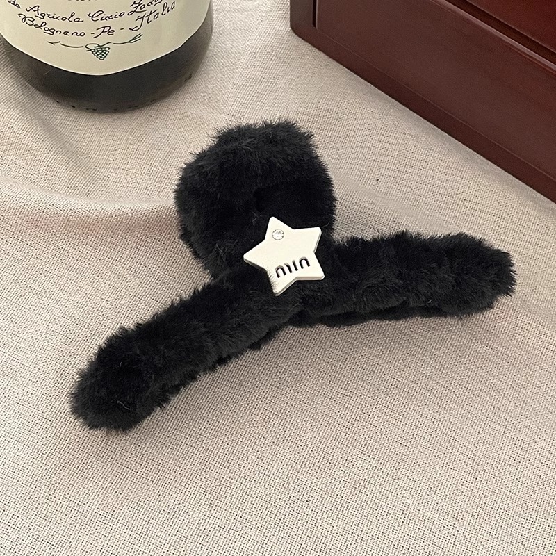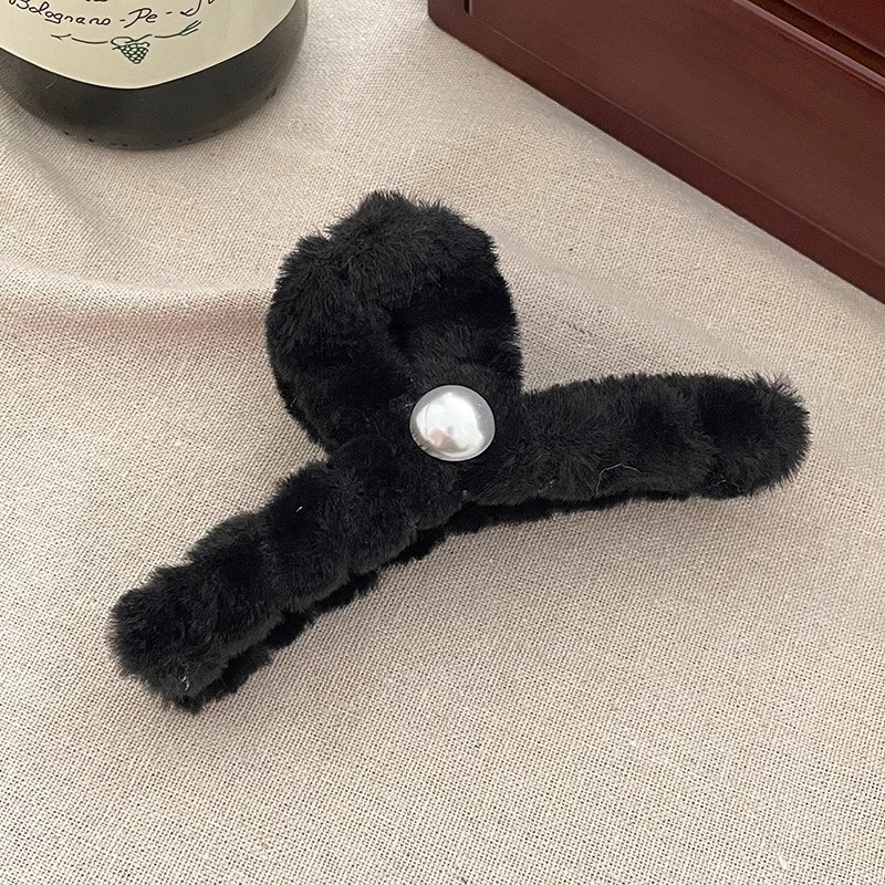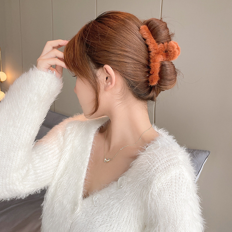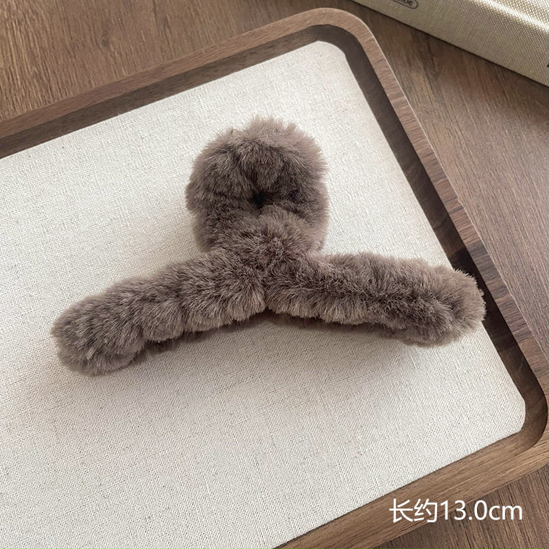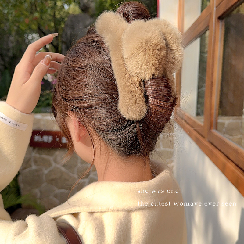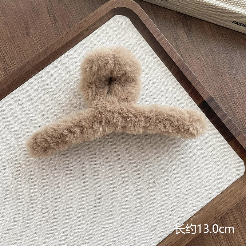 毛绒抓夹女2025新款高级感秋冬大号盘发鲨鱼夹发量多毛毛发夹头饰