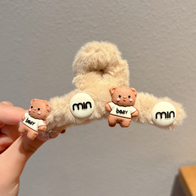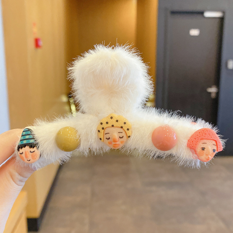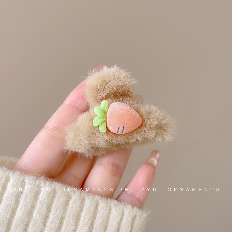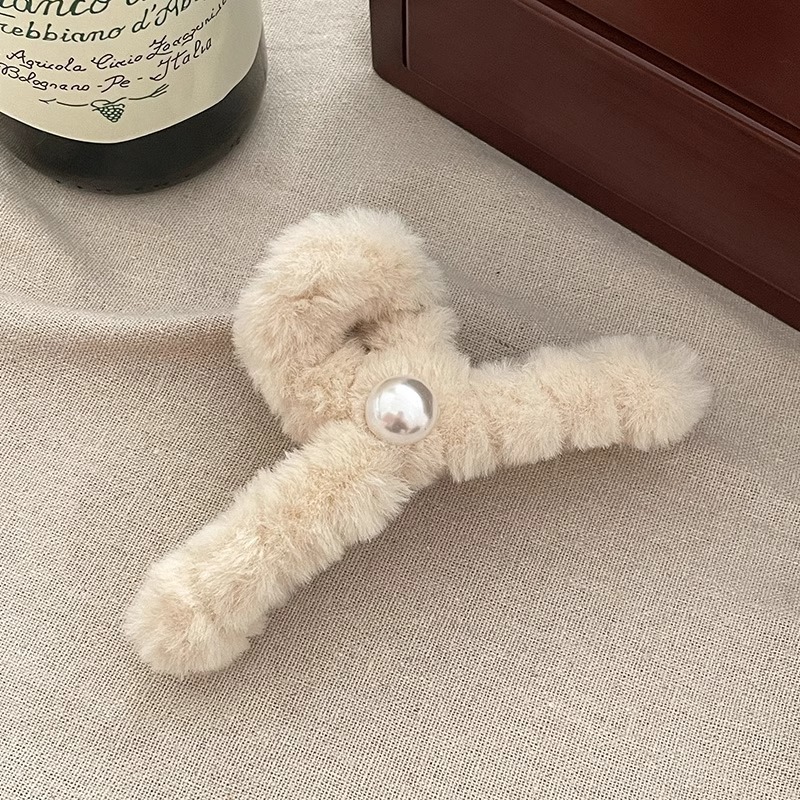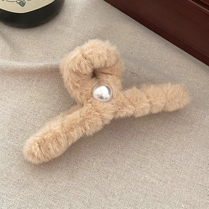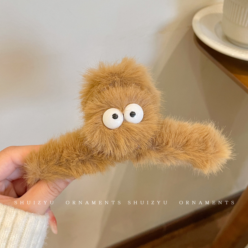 毛绒抓夹女2025新款高级感秋冬大号盘发鲨鱼夹发量多毛毛发夹头饰
