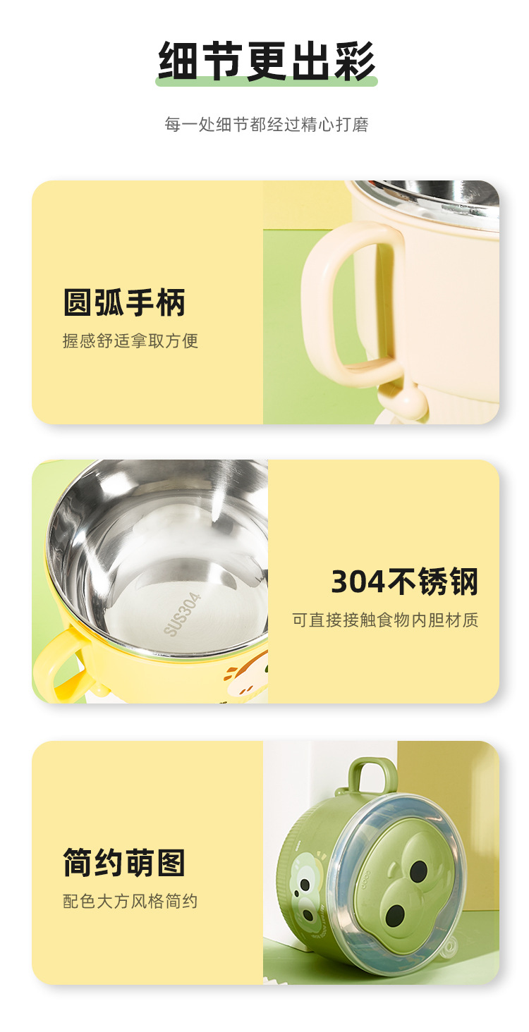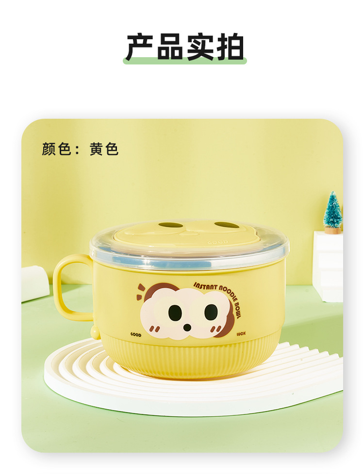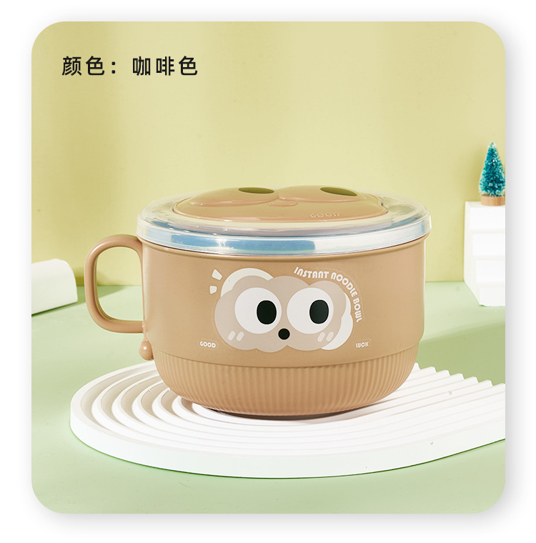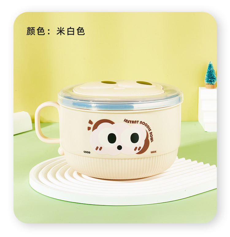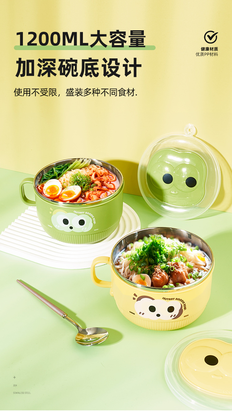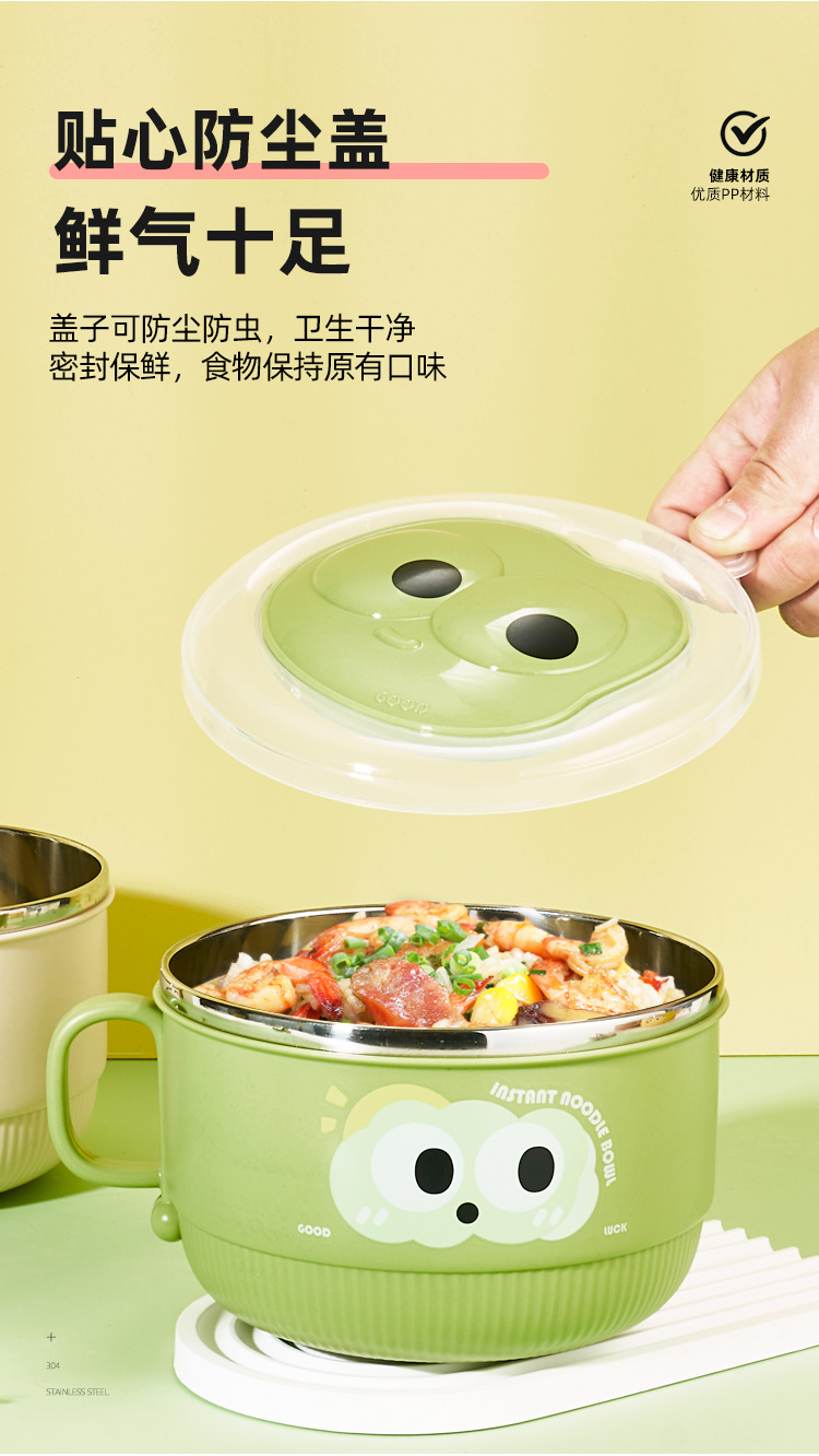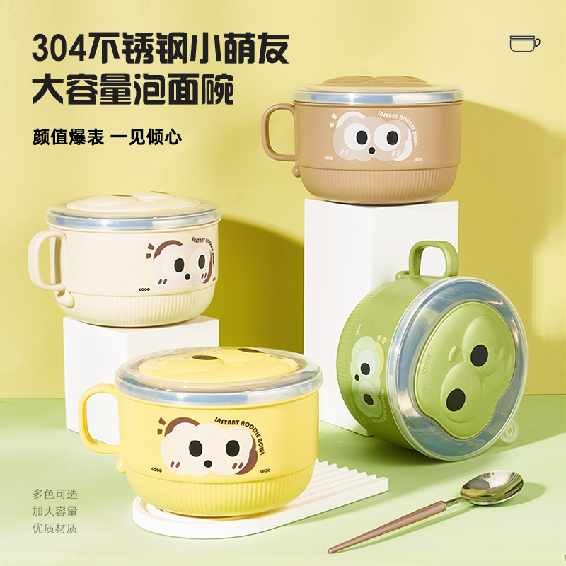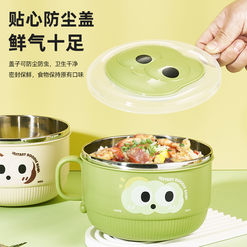 可爱萌趣新款不锈钢饭碗泡面碗不锈钢带盖大容量学生上班族户外野