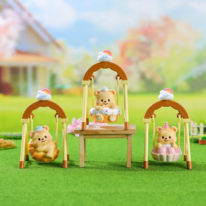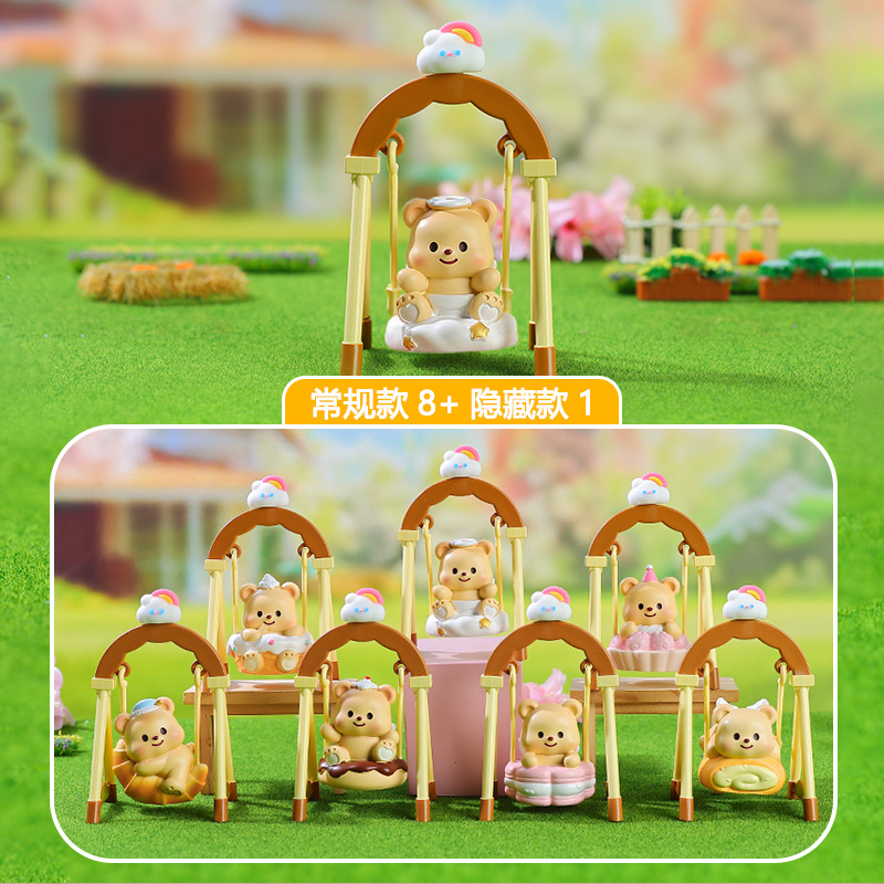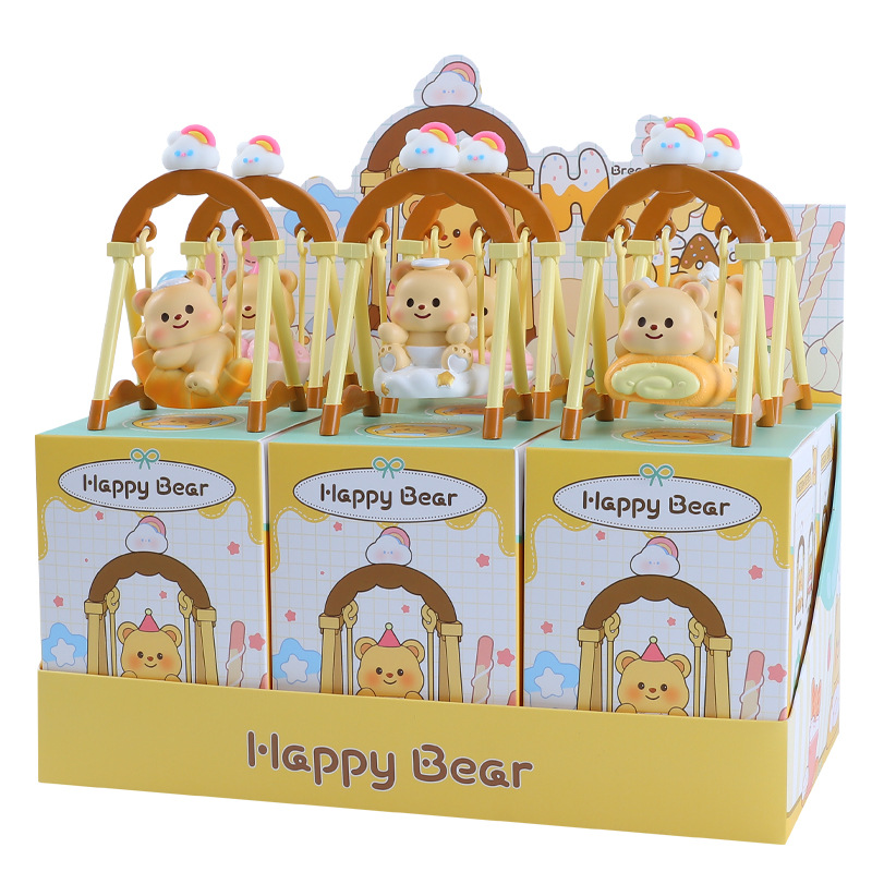 抖音热款黄油小熊荡秋千盲盒摆件卧室桌面装饰摆件学生儿童小礼物