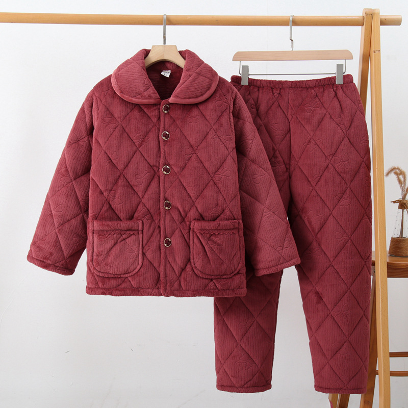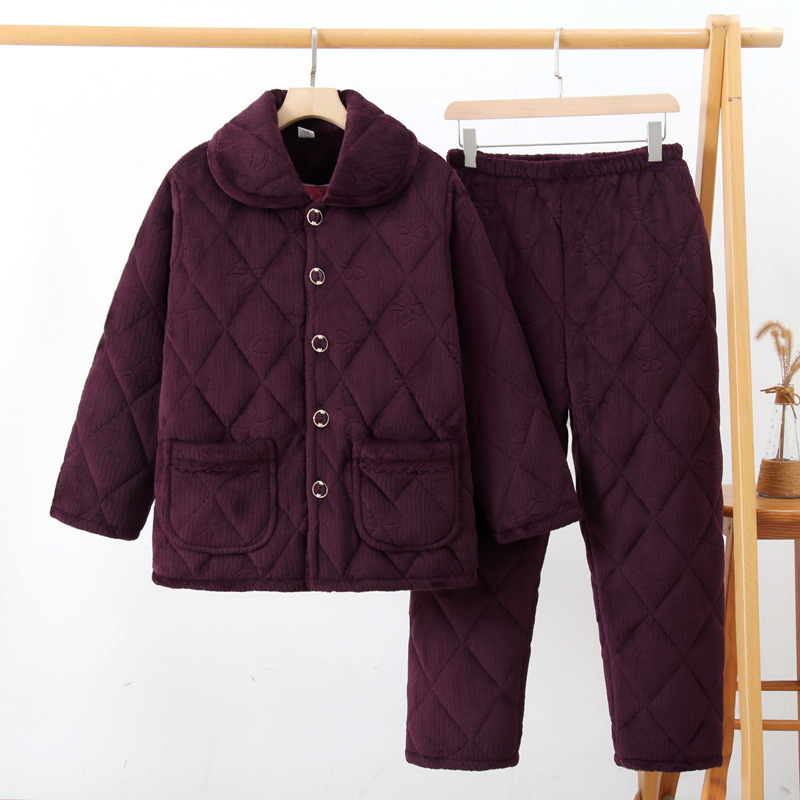 法兰绒三层夹棉加厚睡衣女冬季加绒珊瑚绒可爱冬天棉袄家居服套装