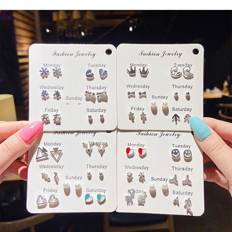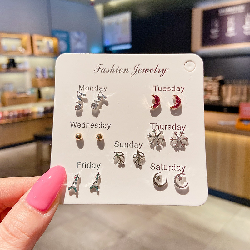 耳钉组合套装感女轻奢小巧精致ins耳钉一周耳饰套装组合耳钉