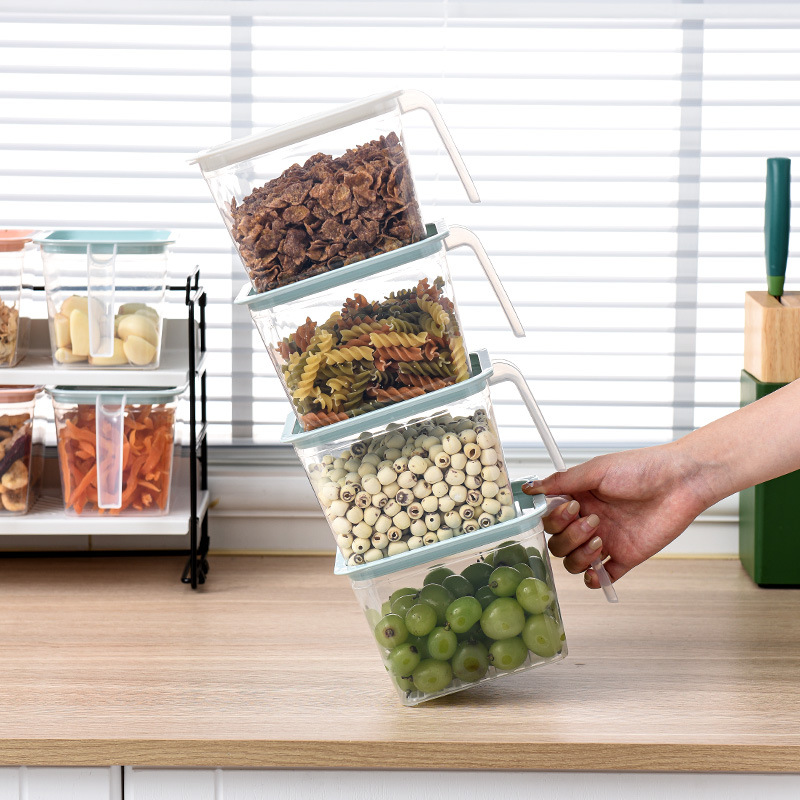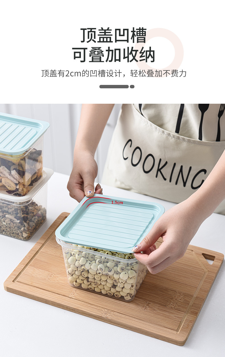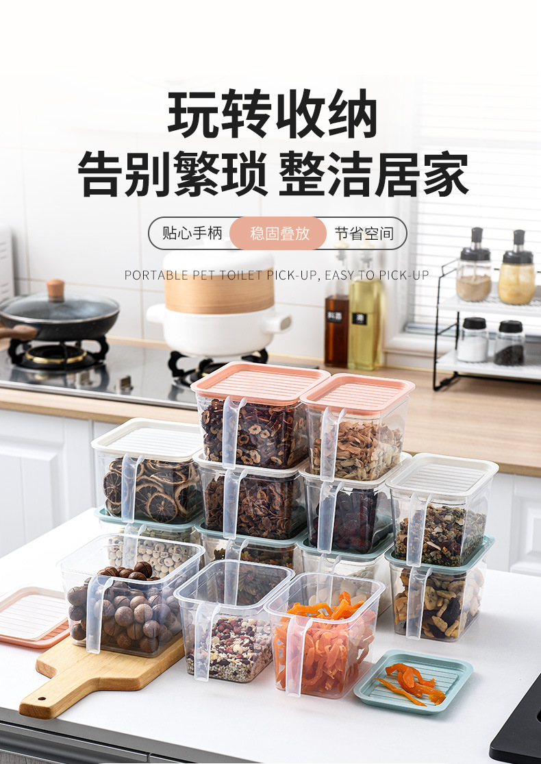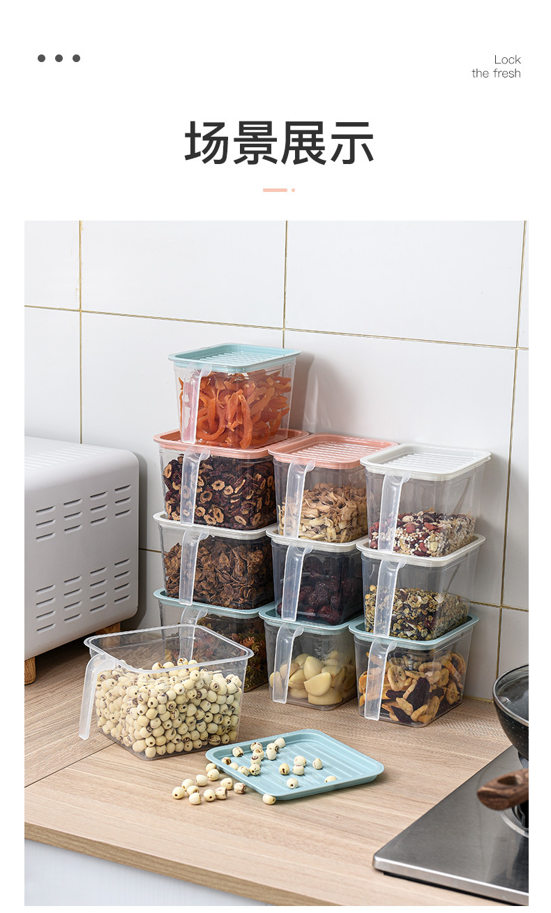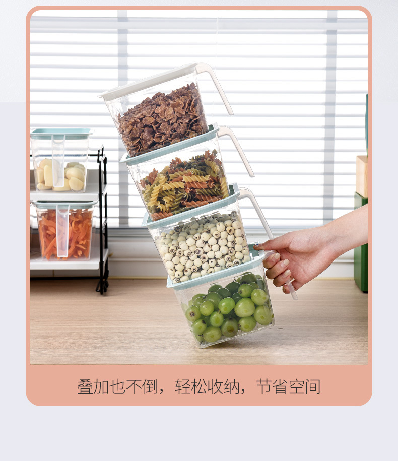 厨房食物冰箱收纳盒储物盒密封保鲜盒五谷杂粮叠加带手柄收纳盒