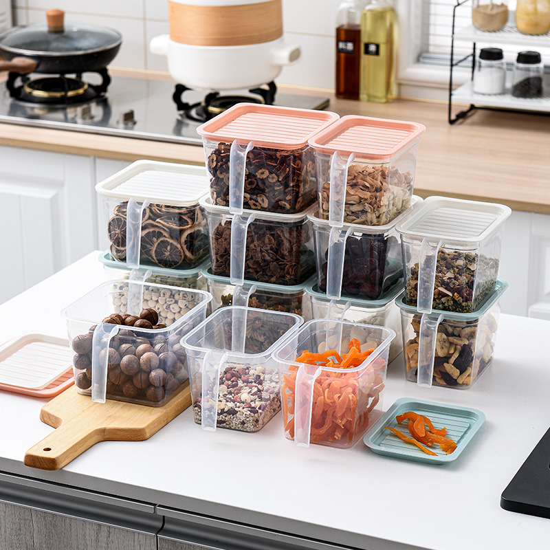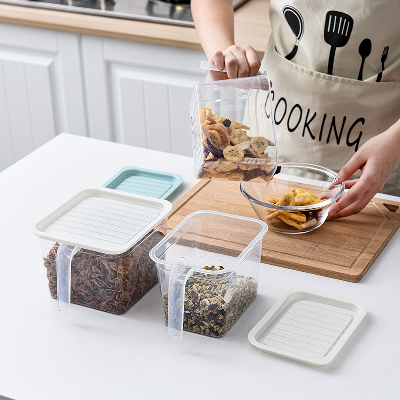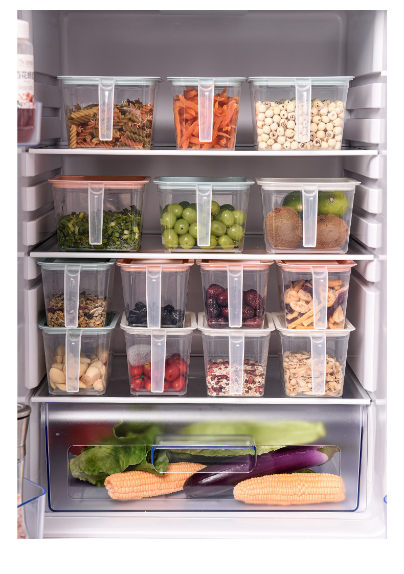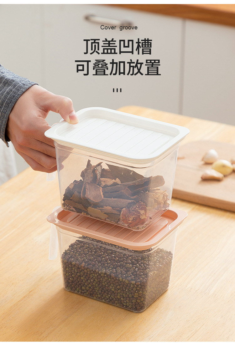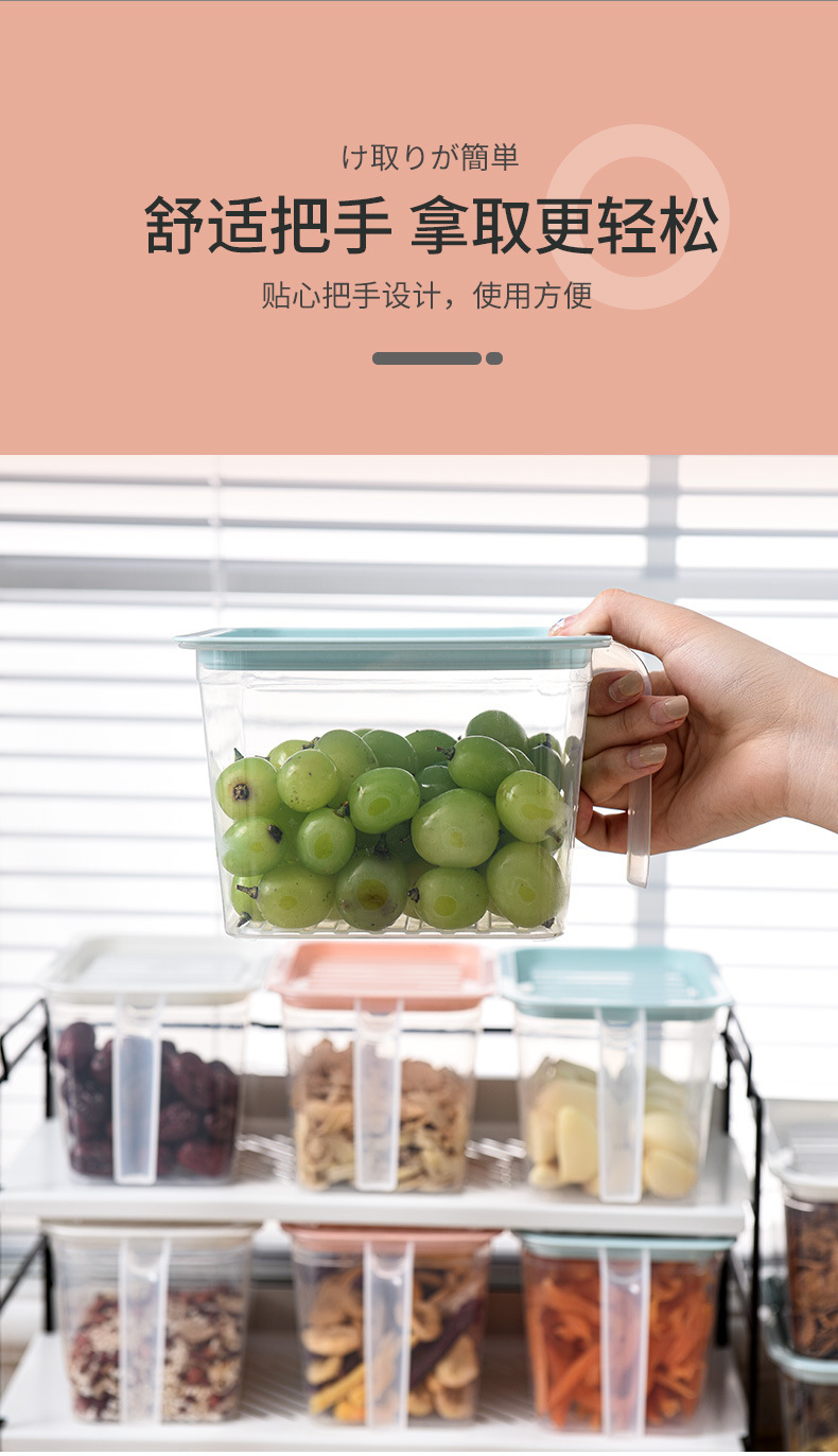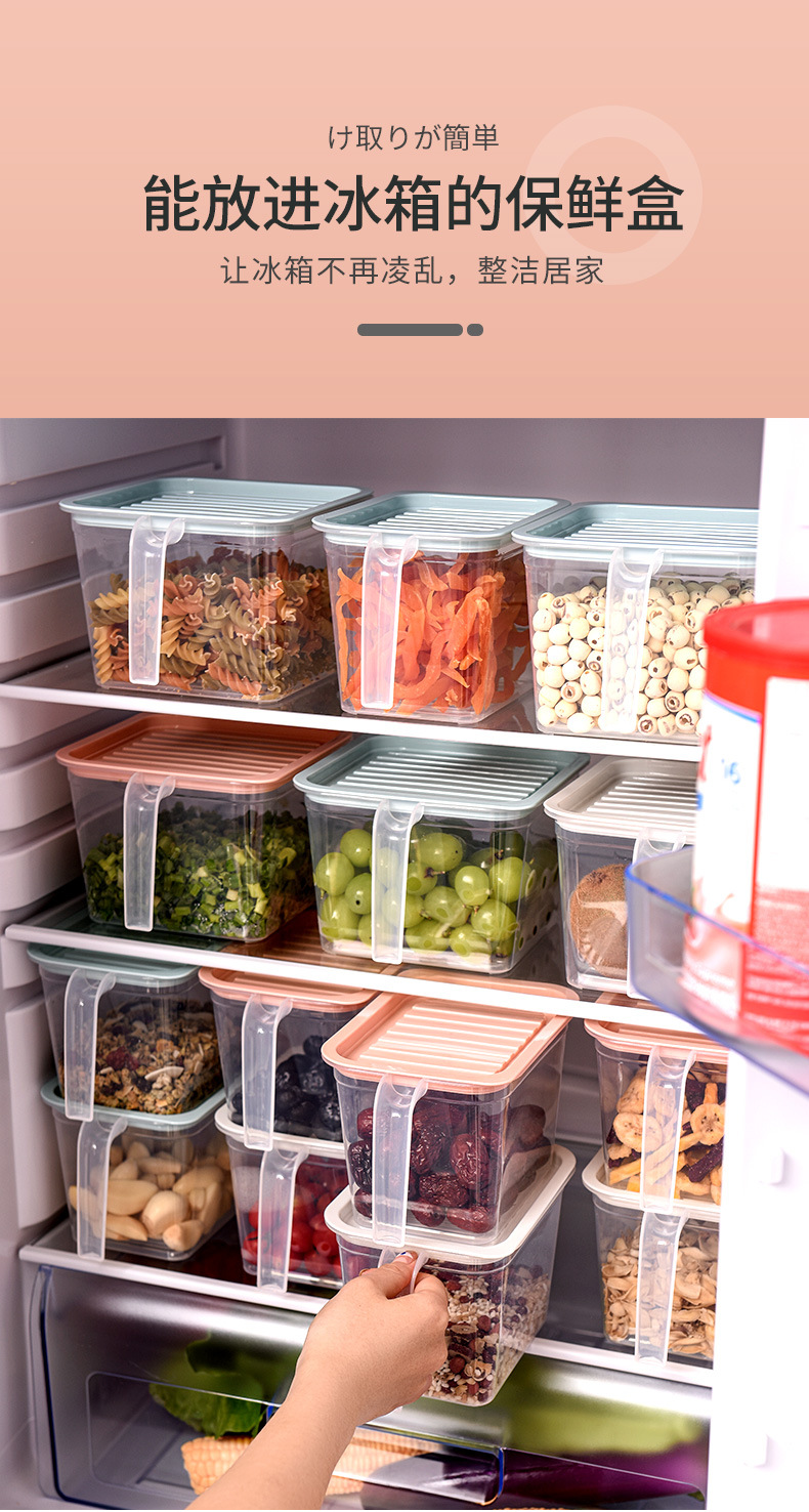 厨房食物冰箱收纳盒储物盒密封保鲜盒五谷杂粮叠加带手柄收纳盒